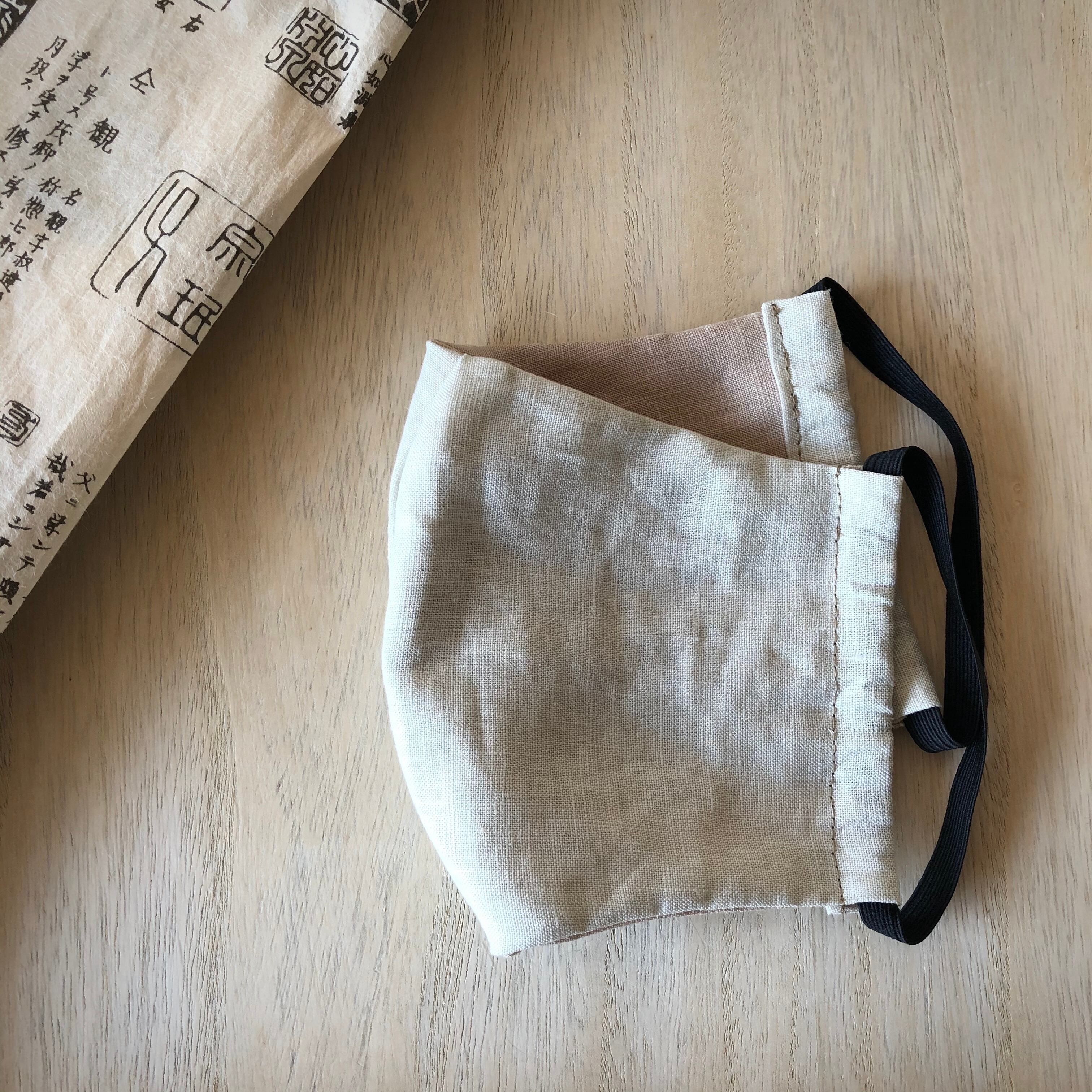 麻素材の男性用大きめサイズの手づくりマスクです!