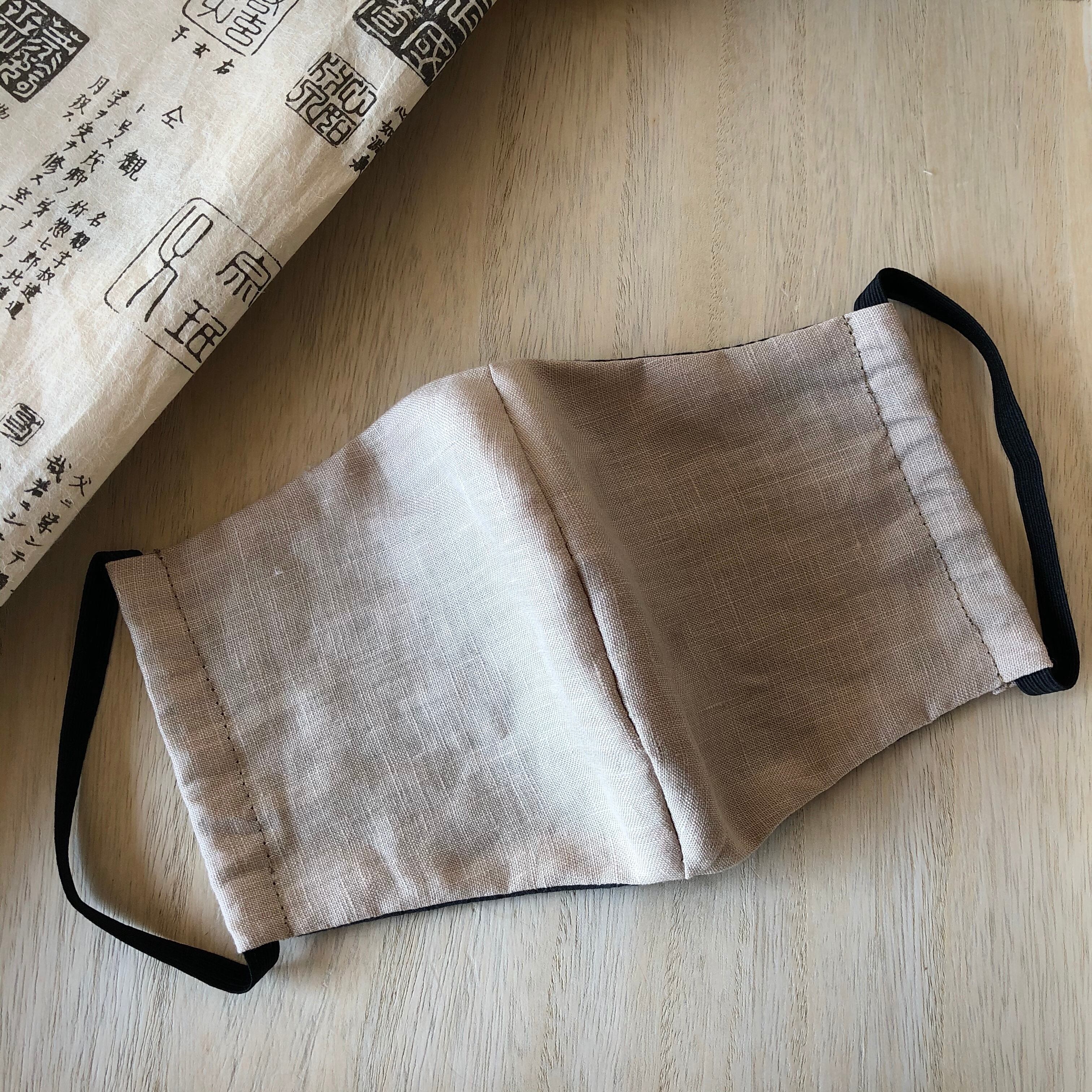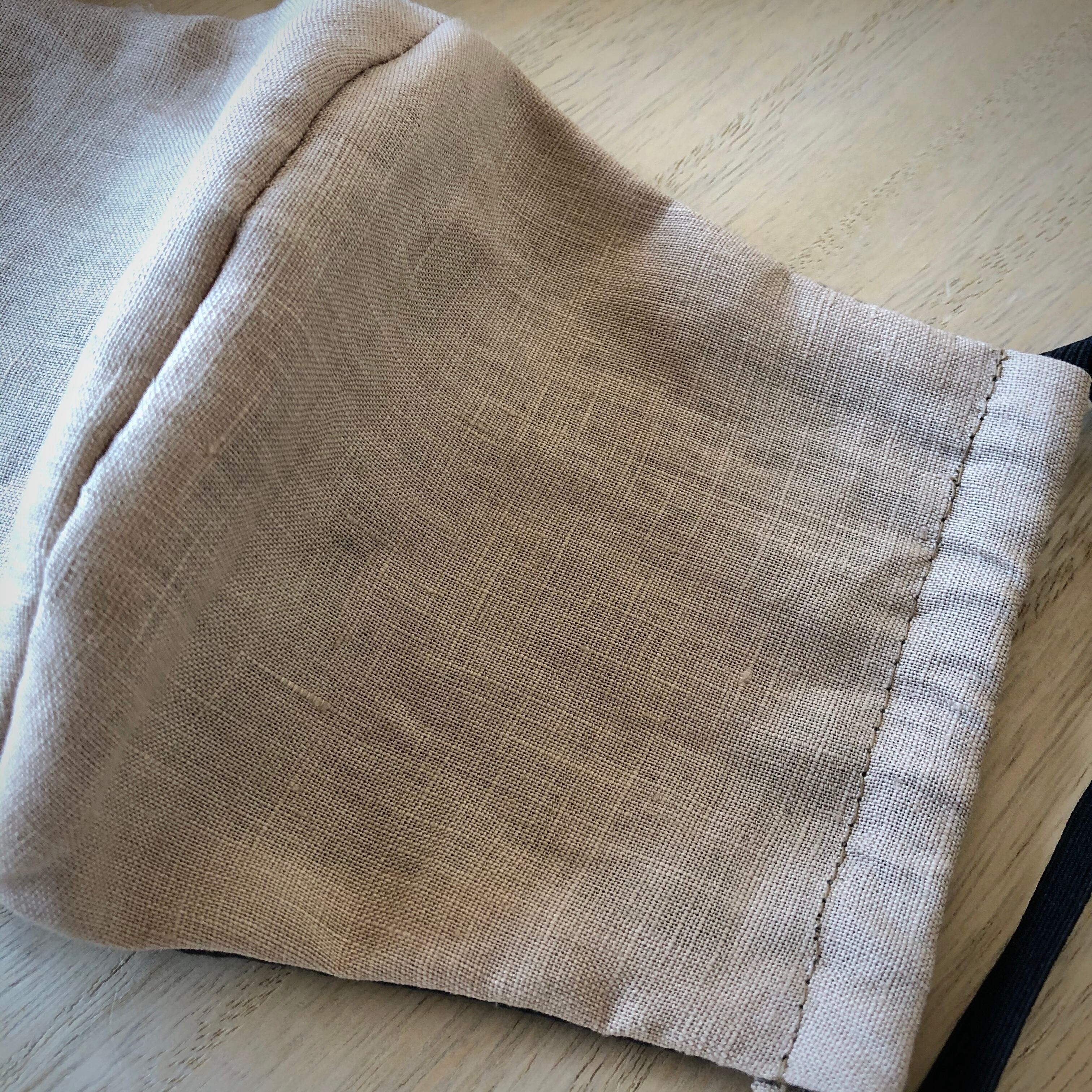 麻素材の男性用大きめサイズの手づくりマスクです!