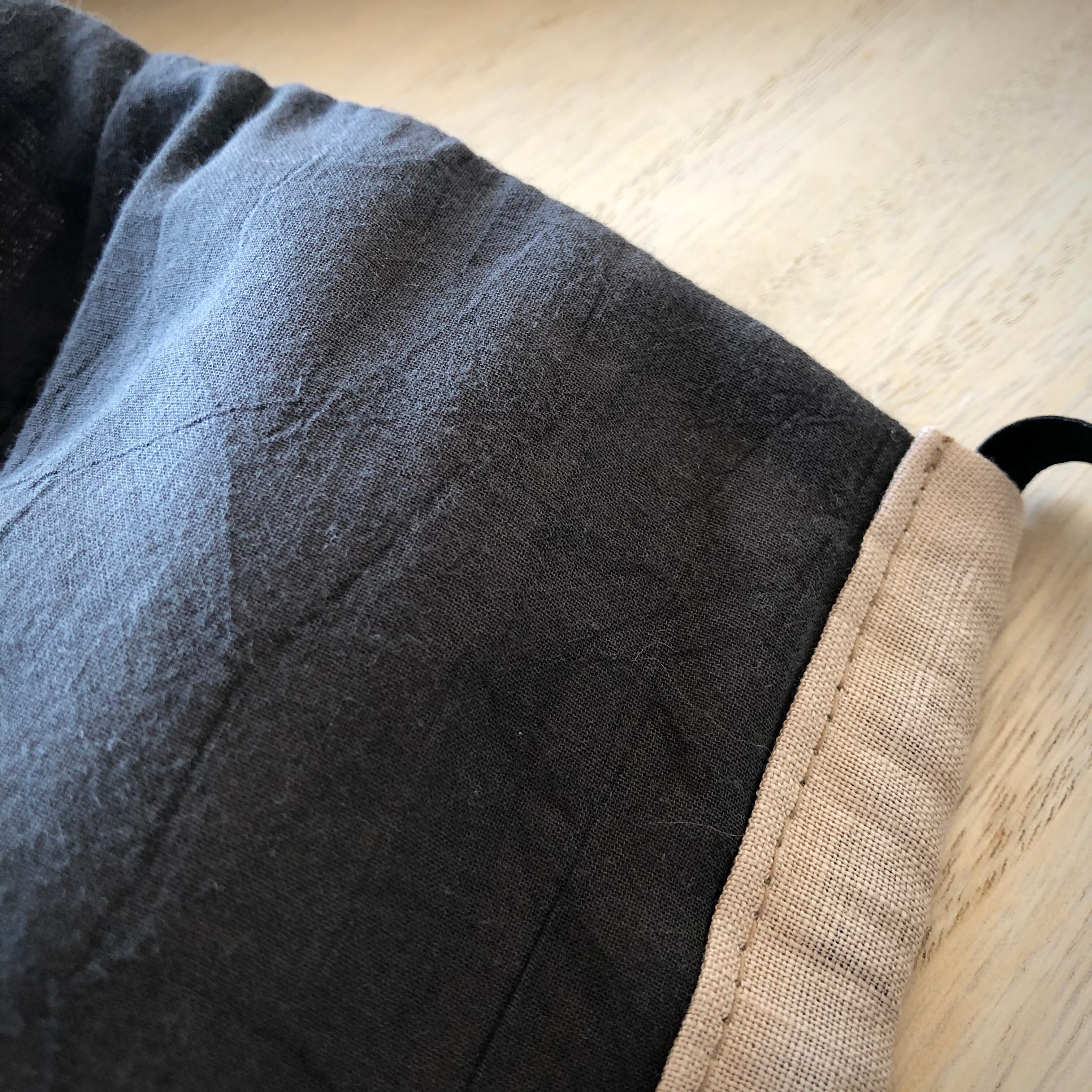 表面はベージュ、裏面は墨色でシワ加工した柔らかめの綿素材です。