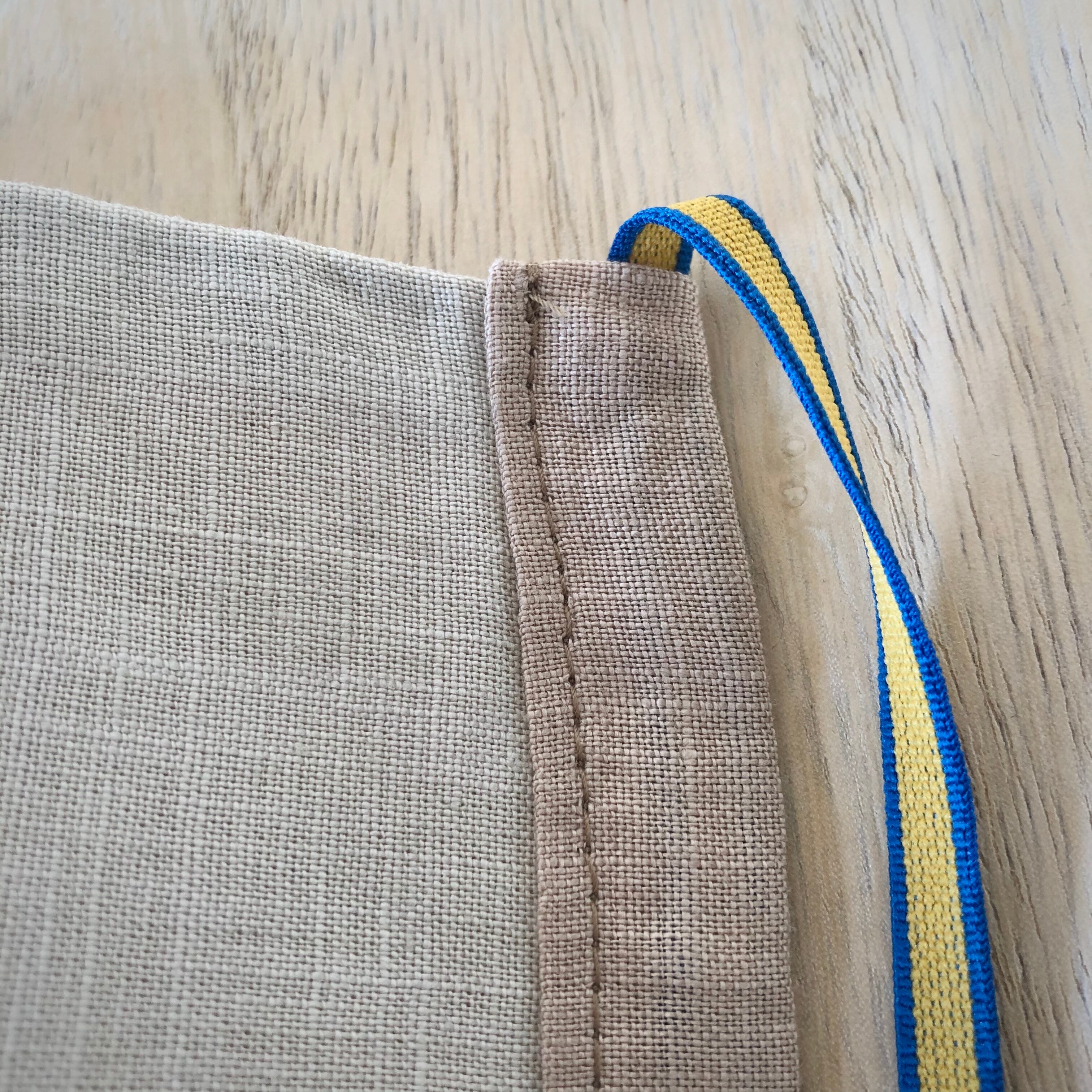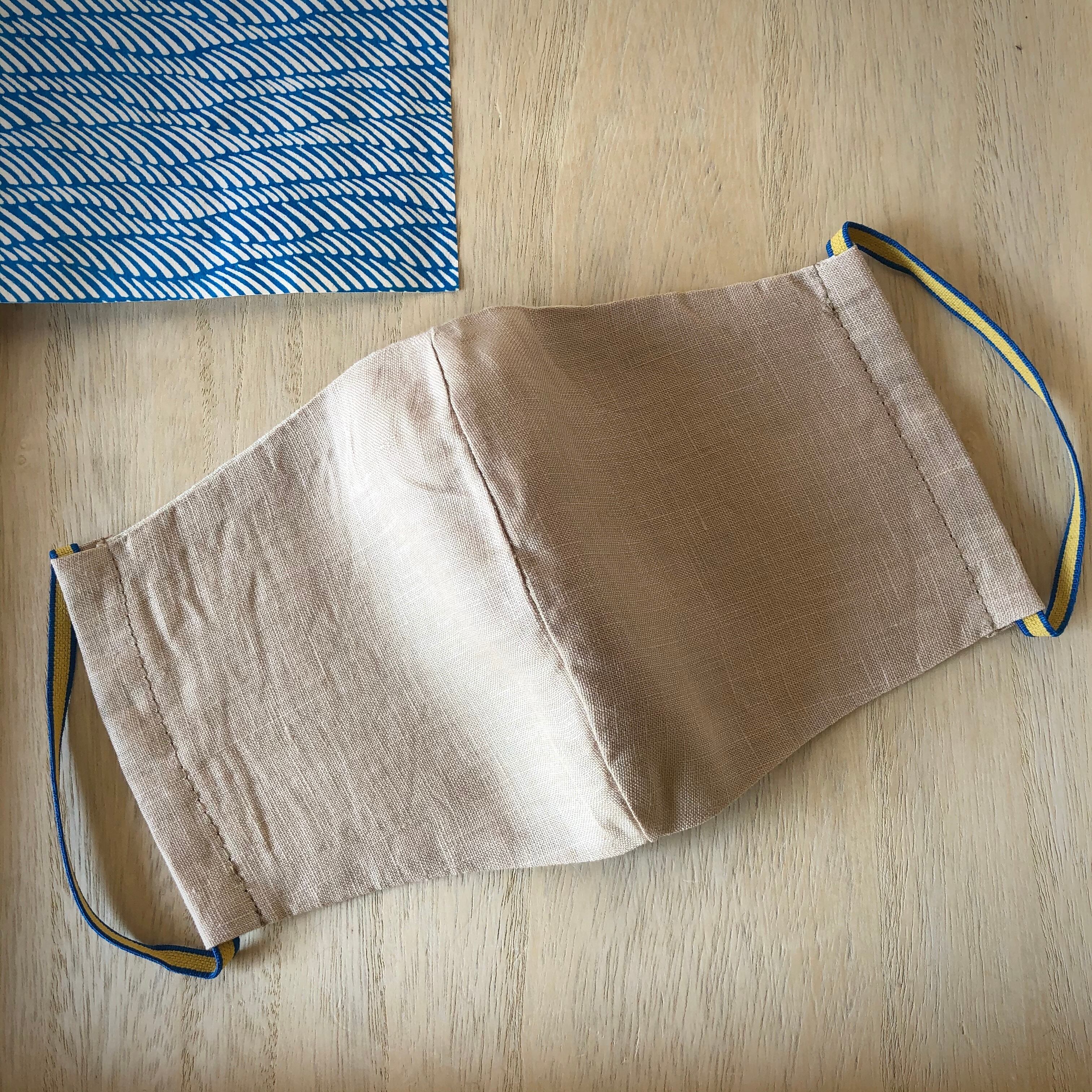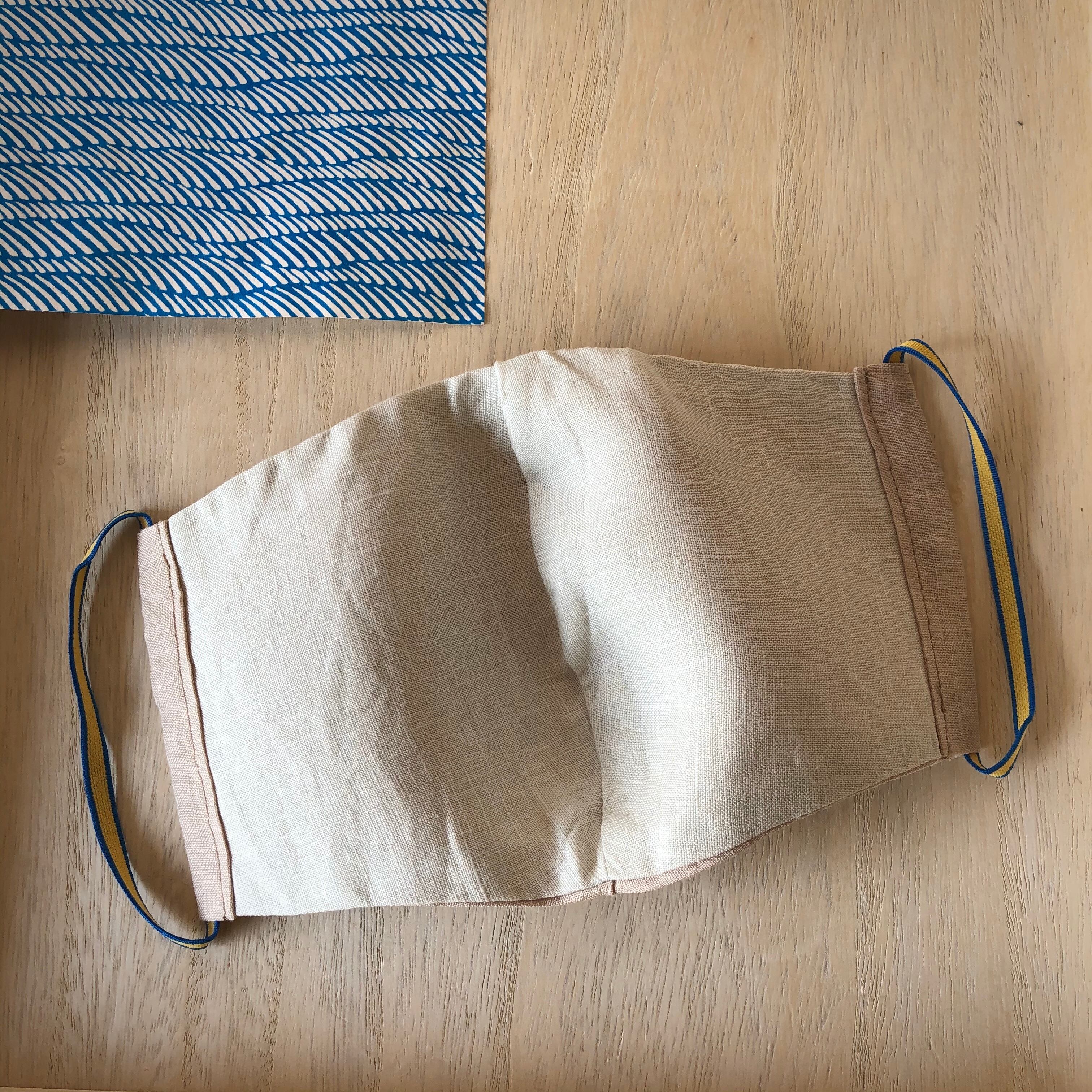 麻素材の男性用大きめサイズの手づくりマスクです!