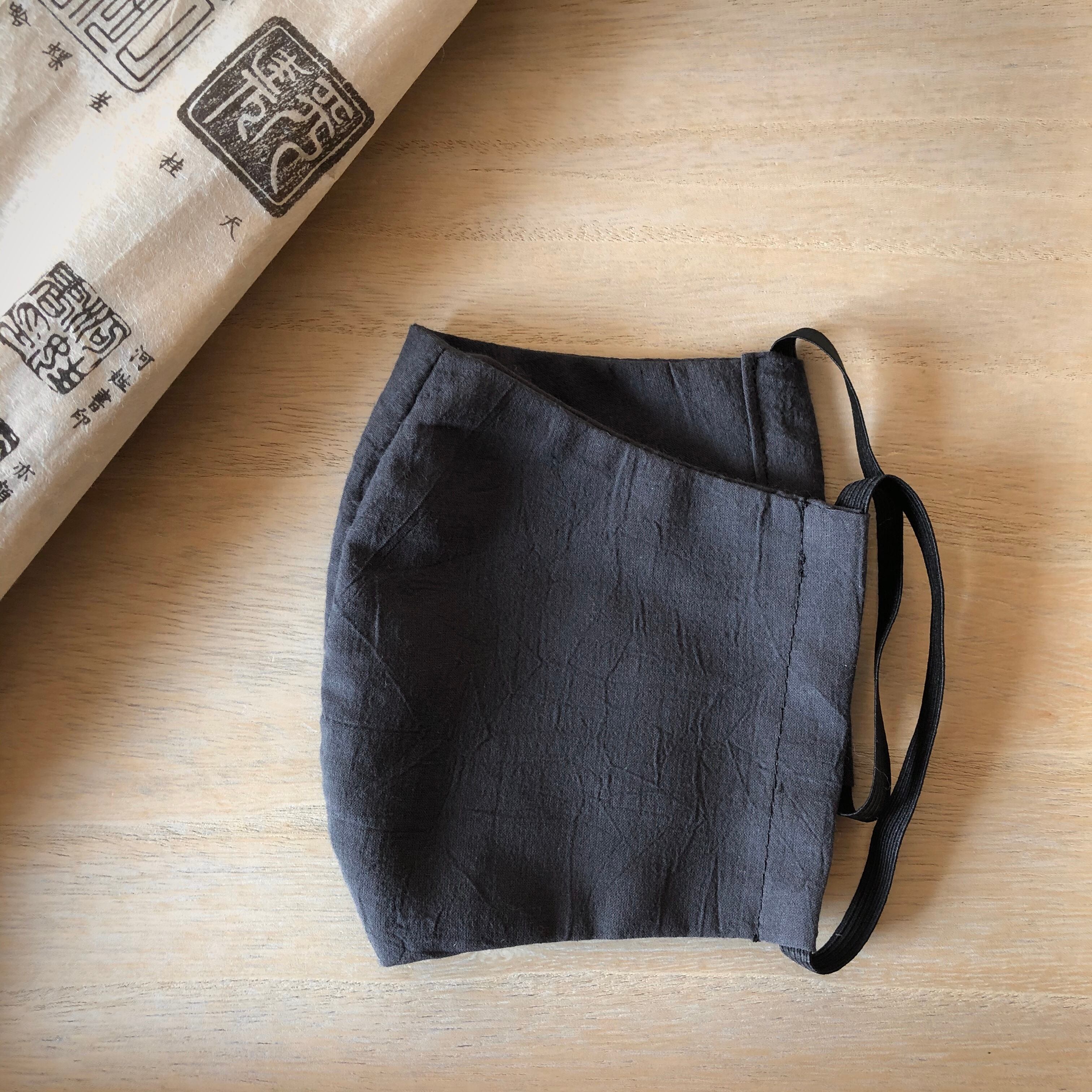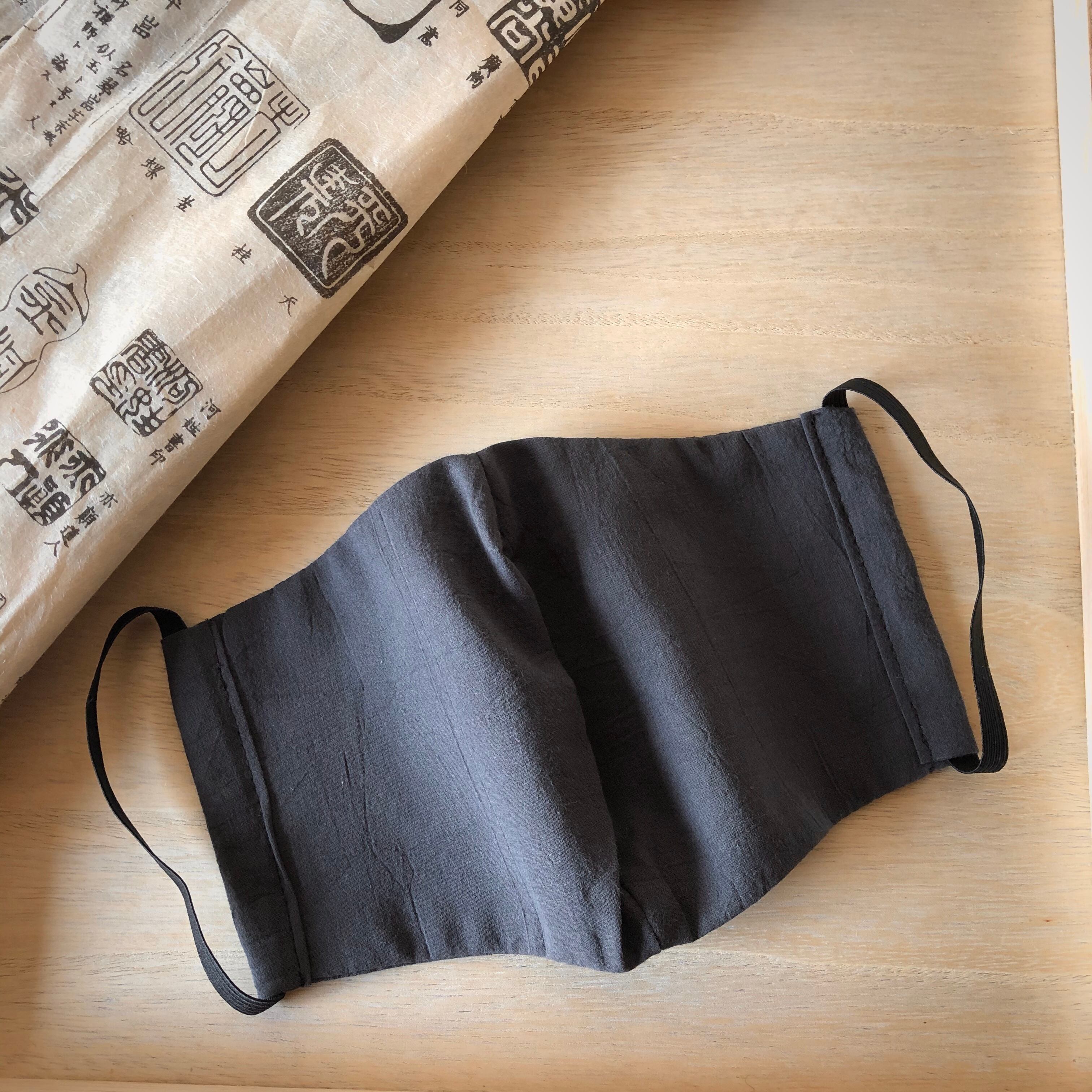 さらりと大人の手作りマスク(男性用大きめサイズ)墨×墨 【再販】