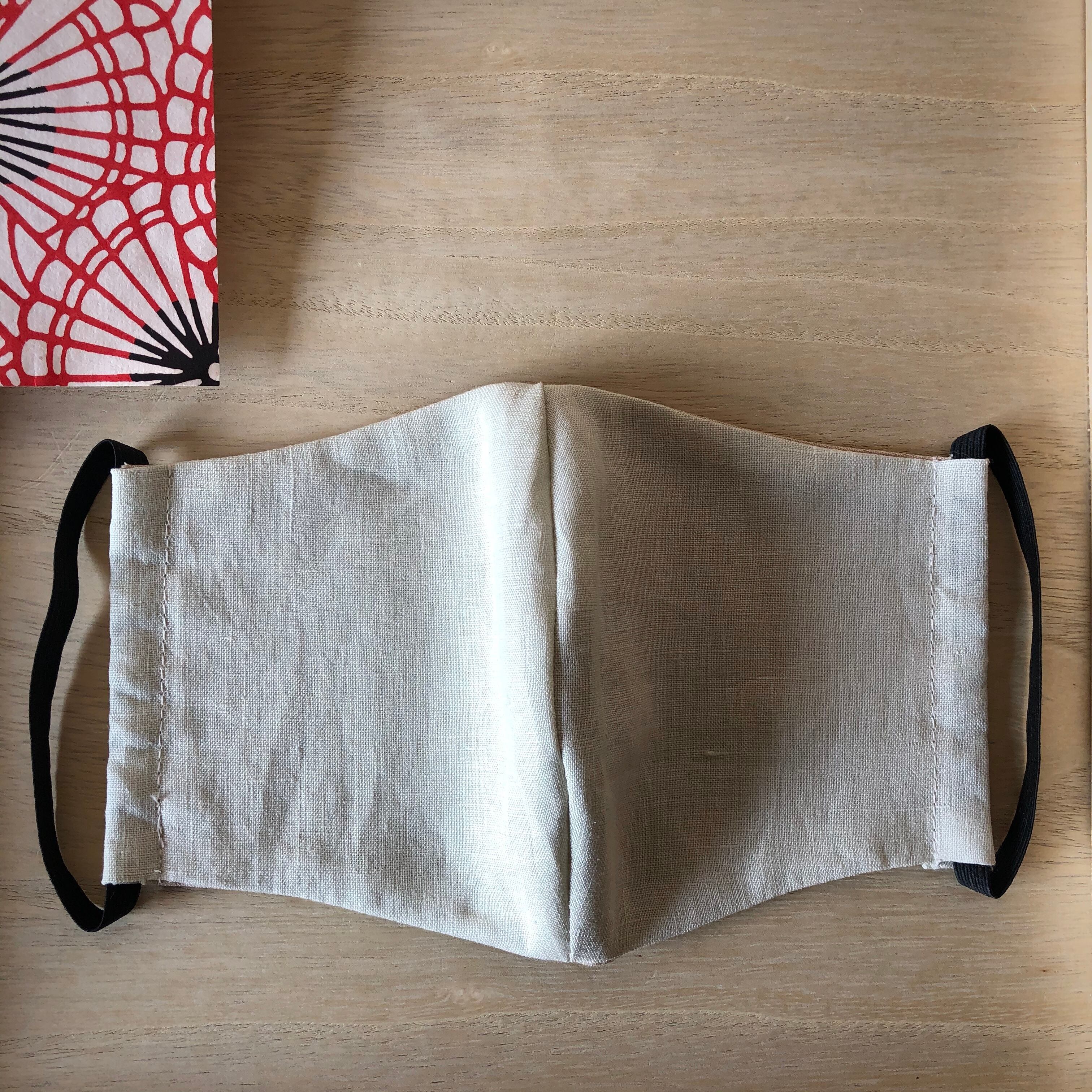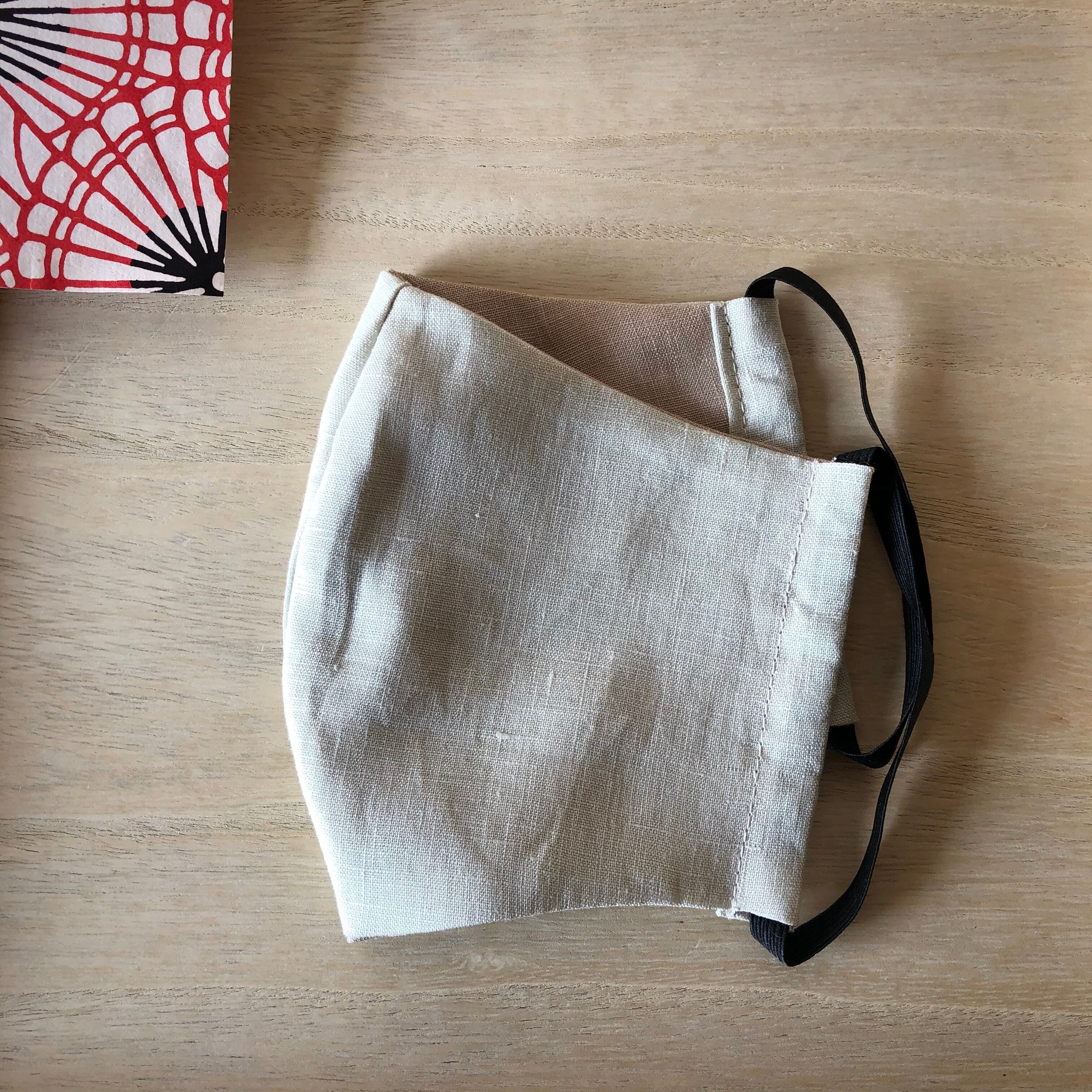 麻素材の男性用大きめサイズの手づくりマスクです!