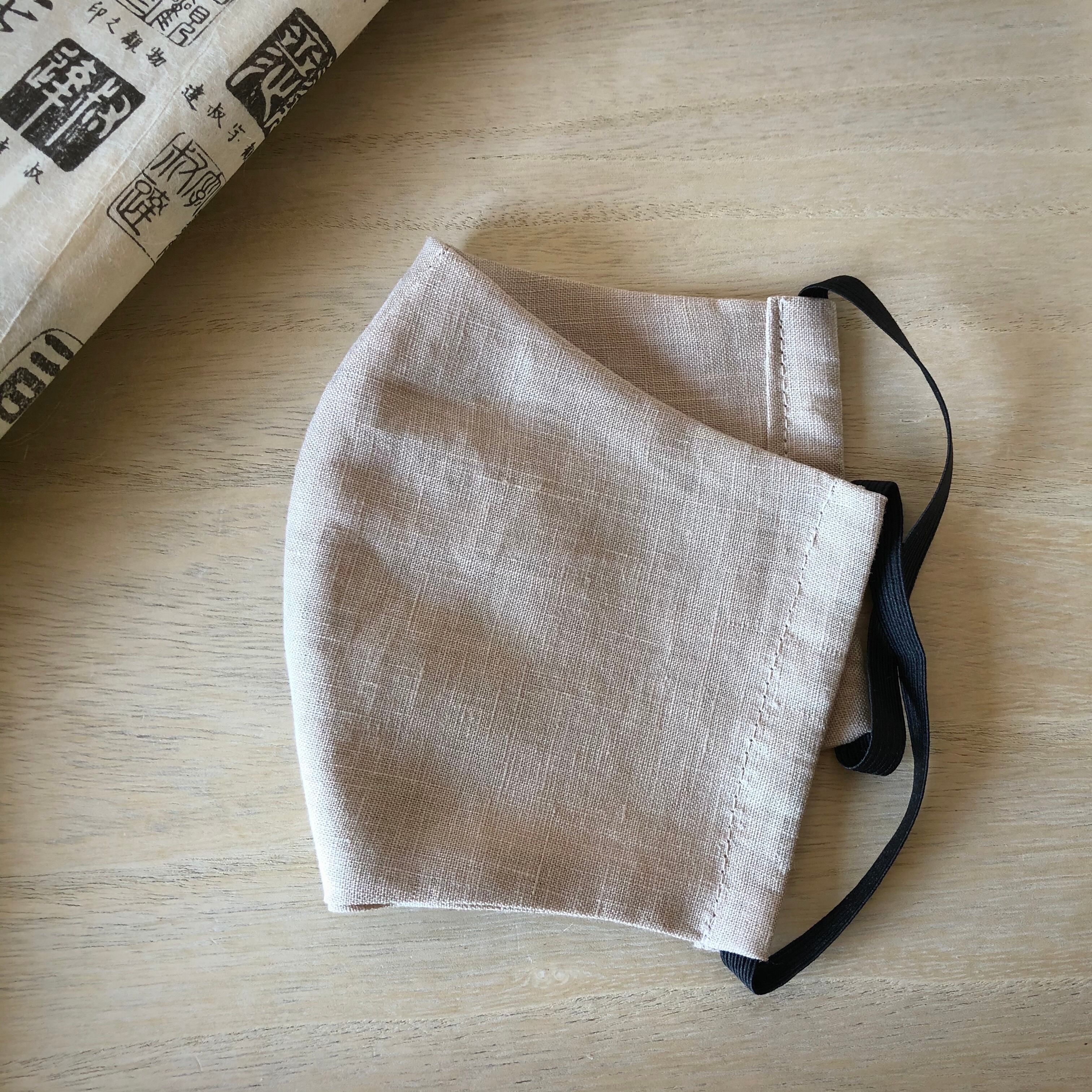 麻素材の男性用大きめサイズの手づくりマスクです!