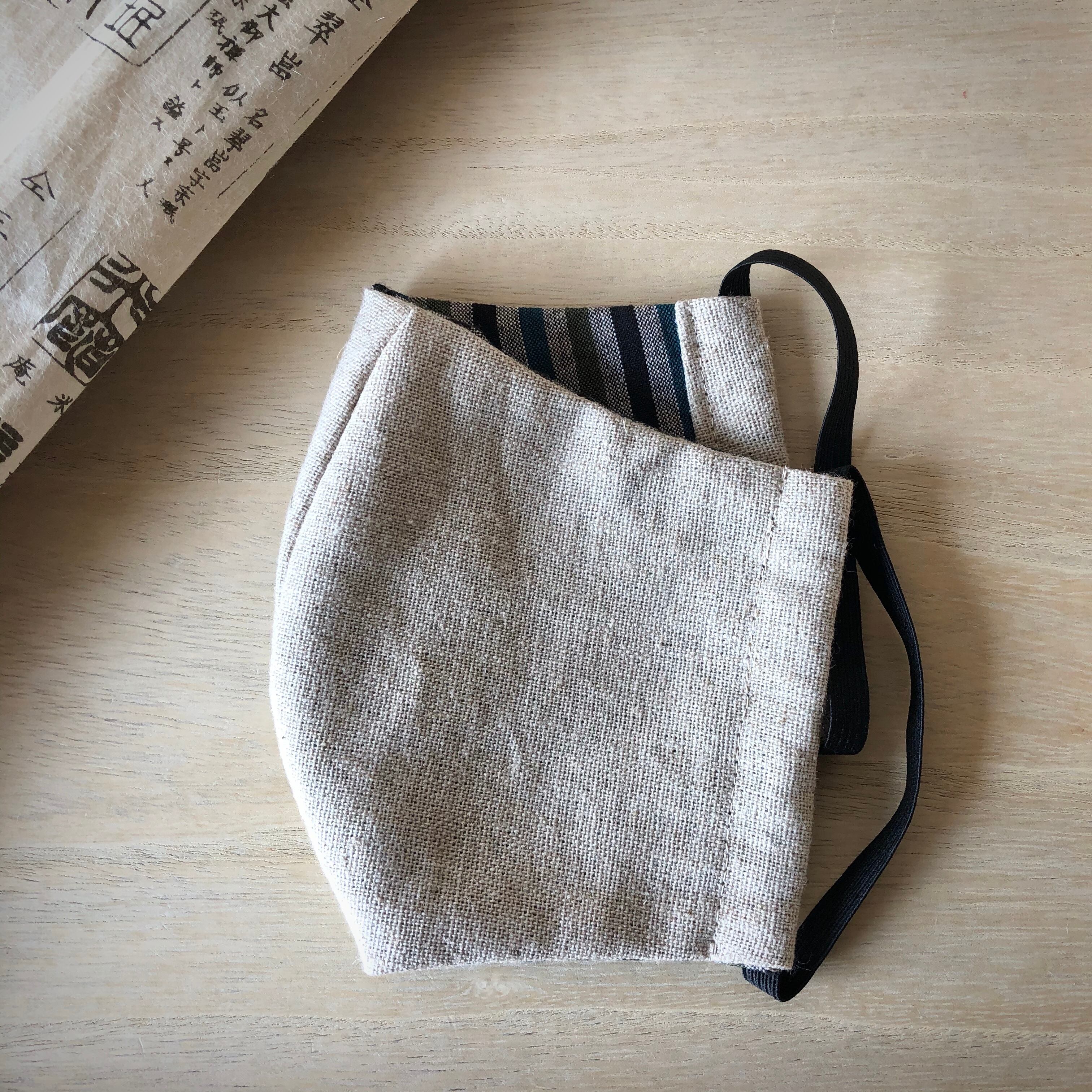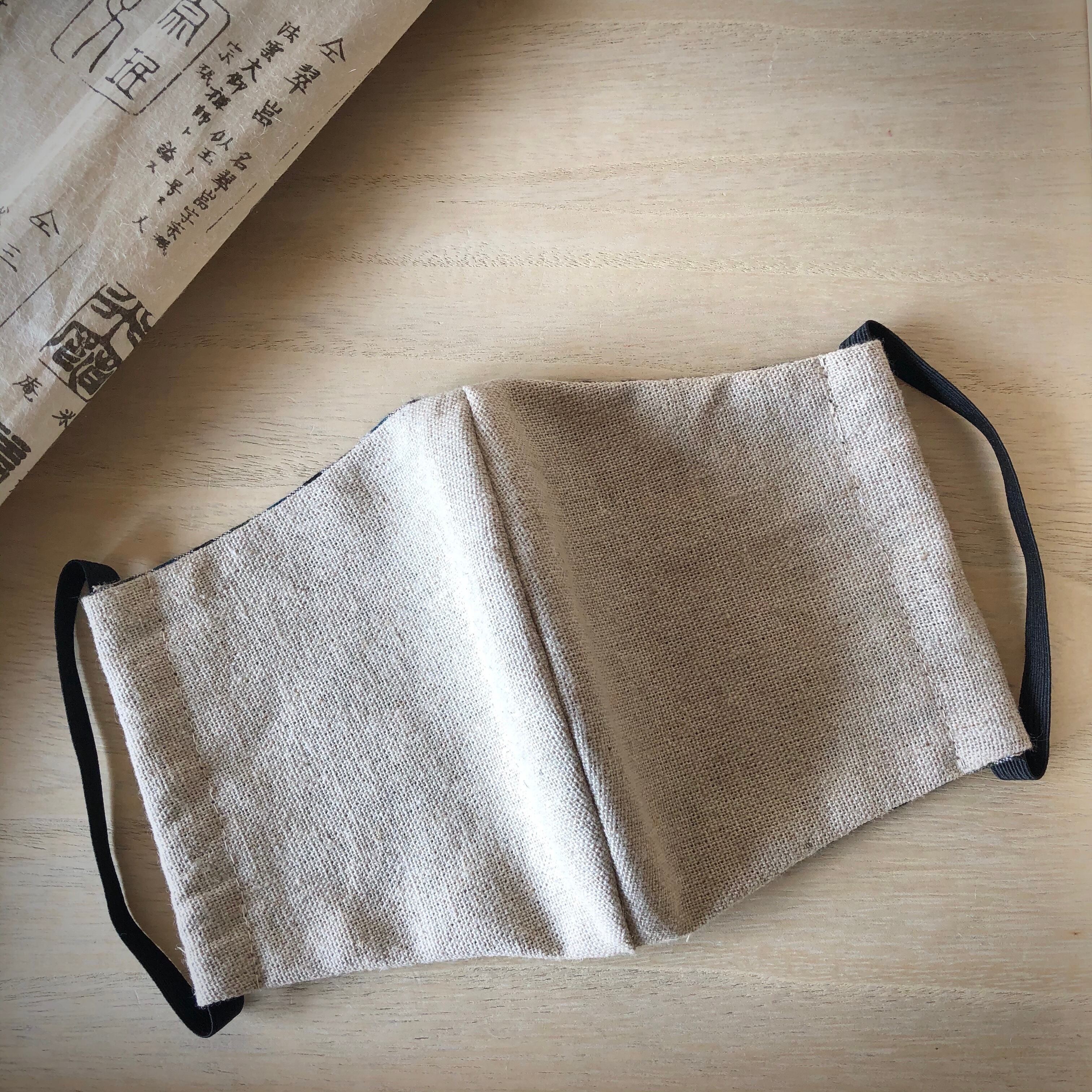 柔らかい麻綿混合素材の男性用大きめサイズの手づくりマスクです!
