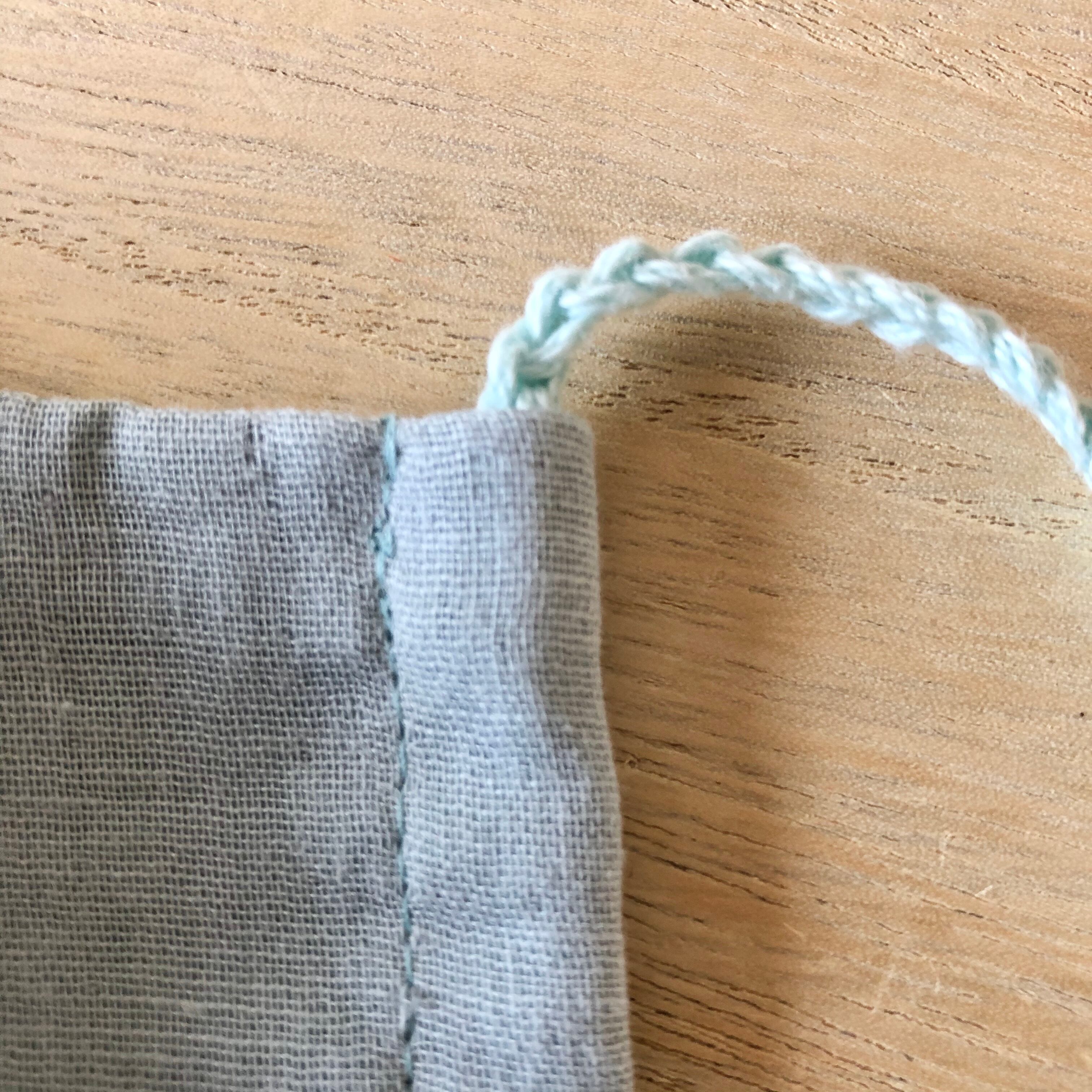 表面の生地はガーゼでパステルブルーグリーンの優しい色味です。