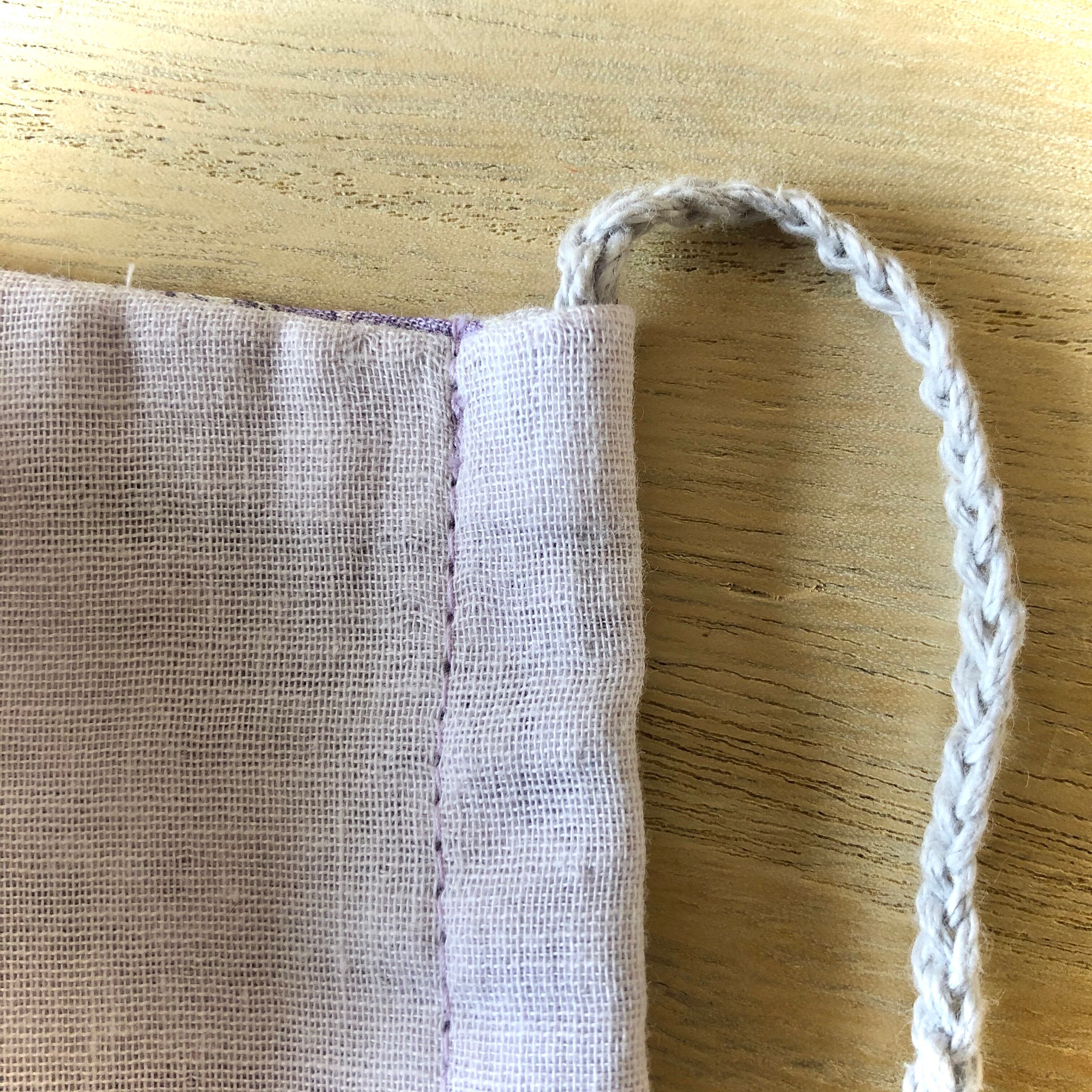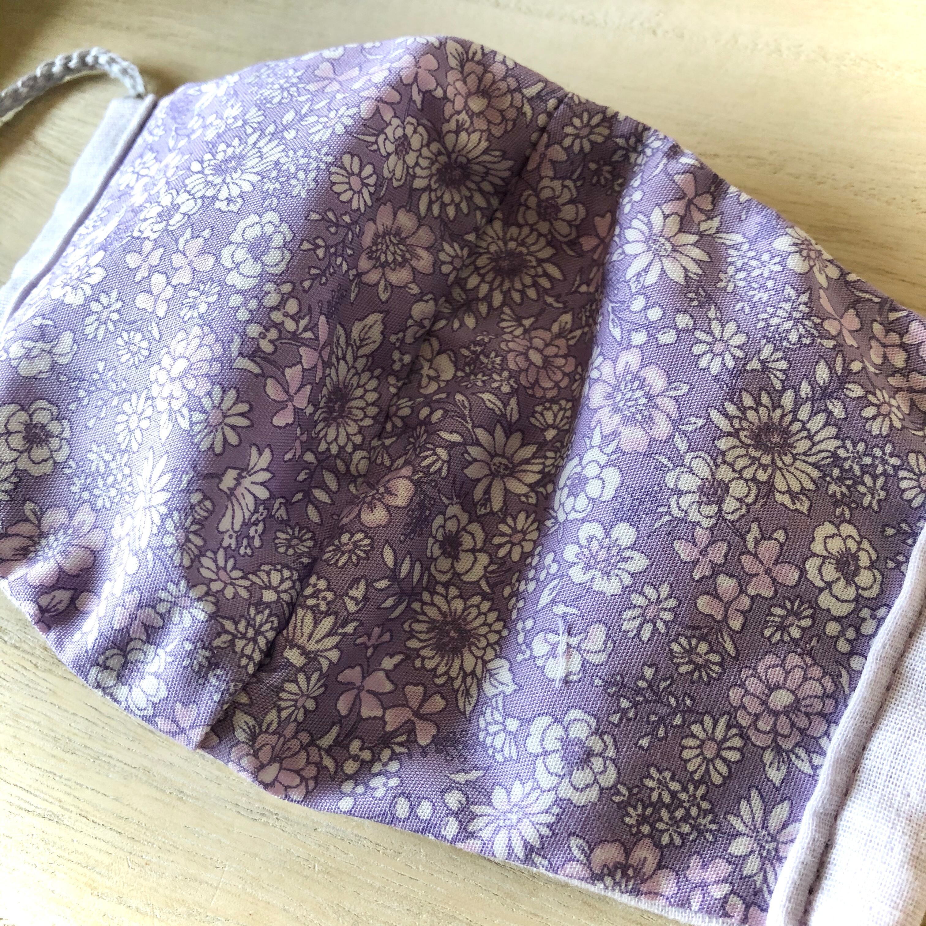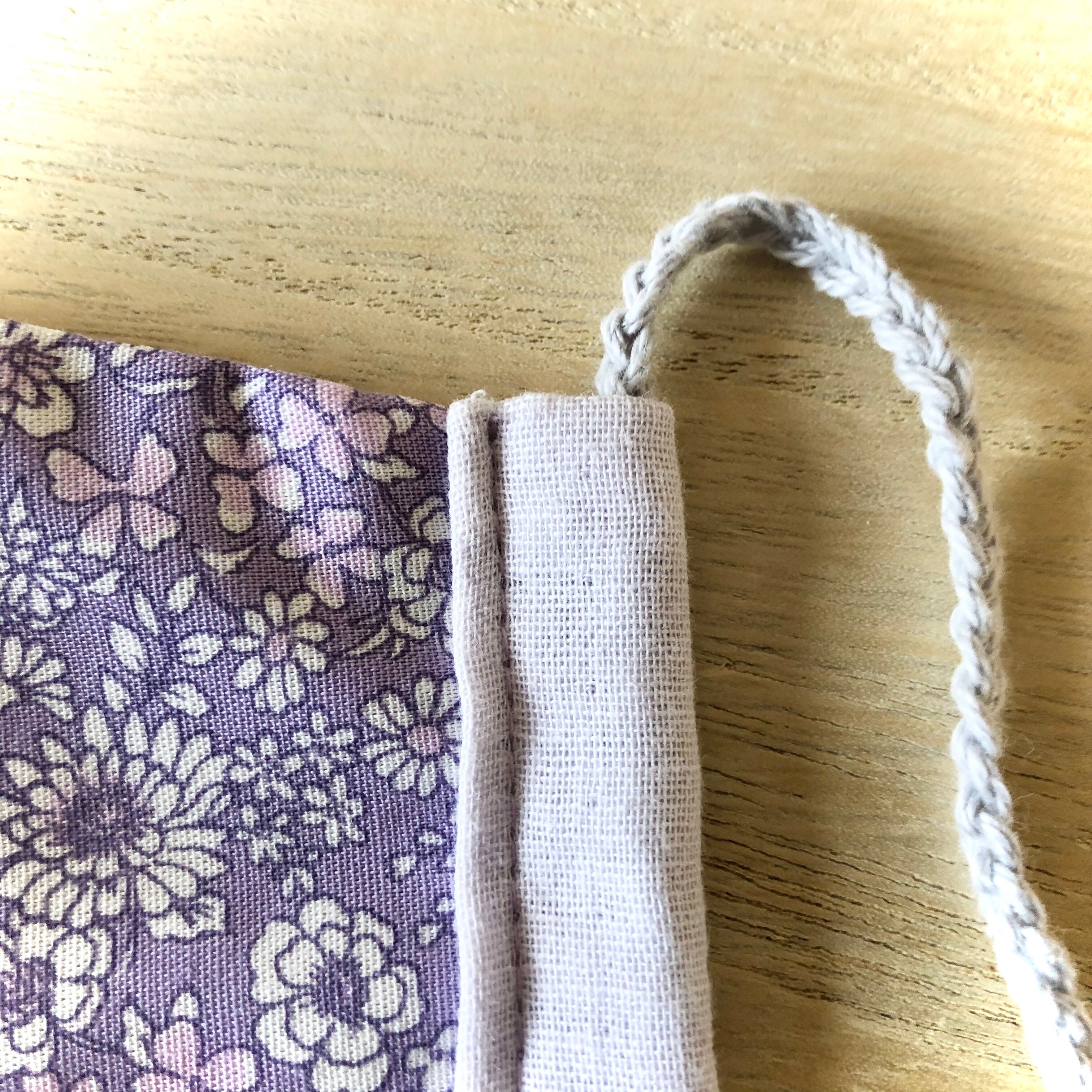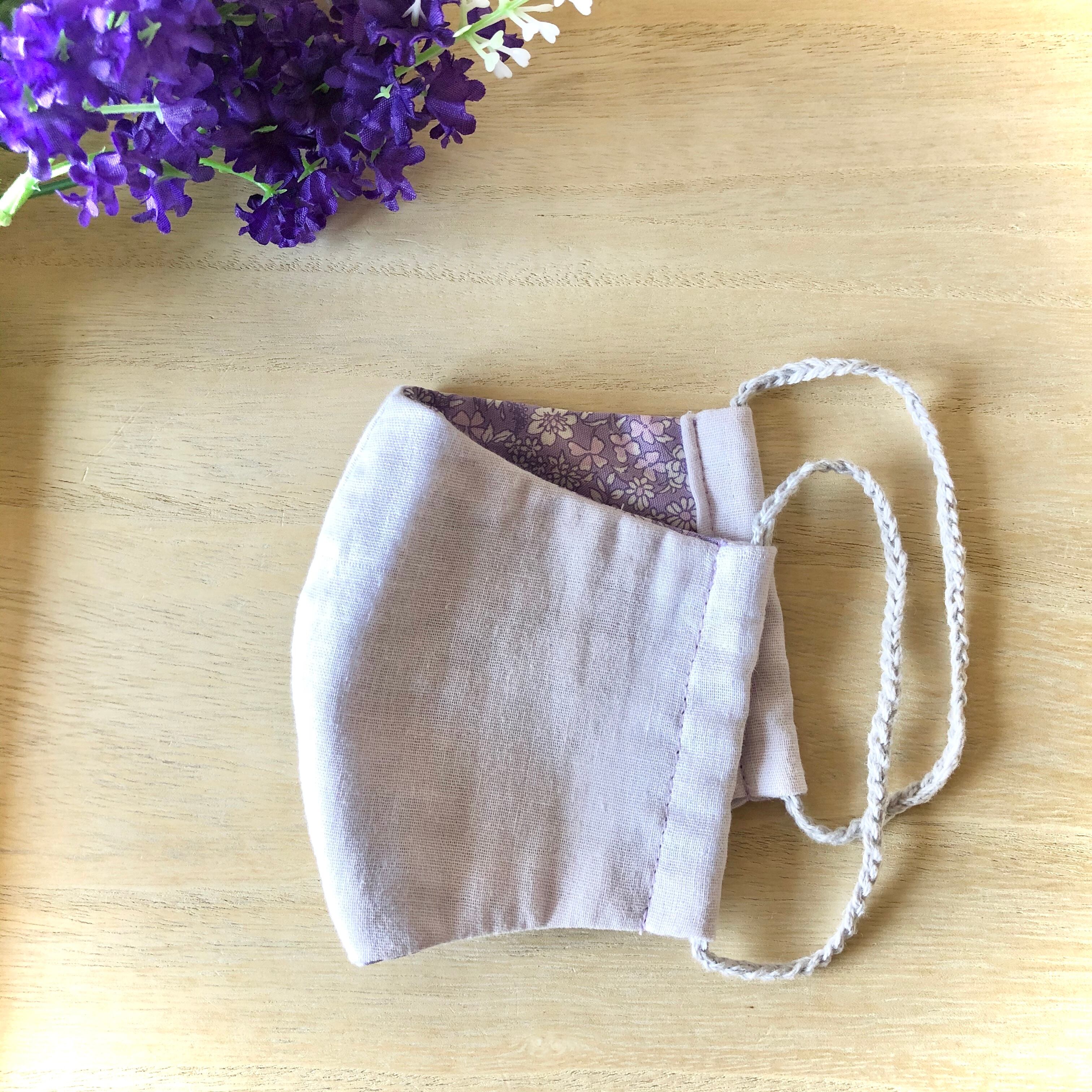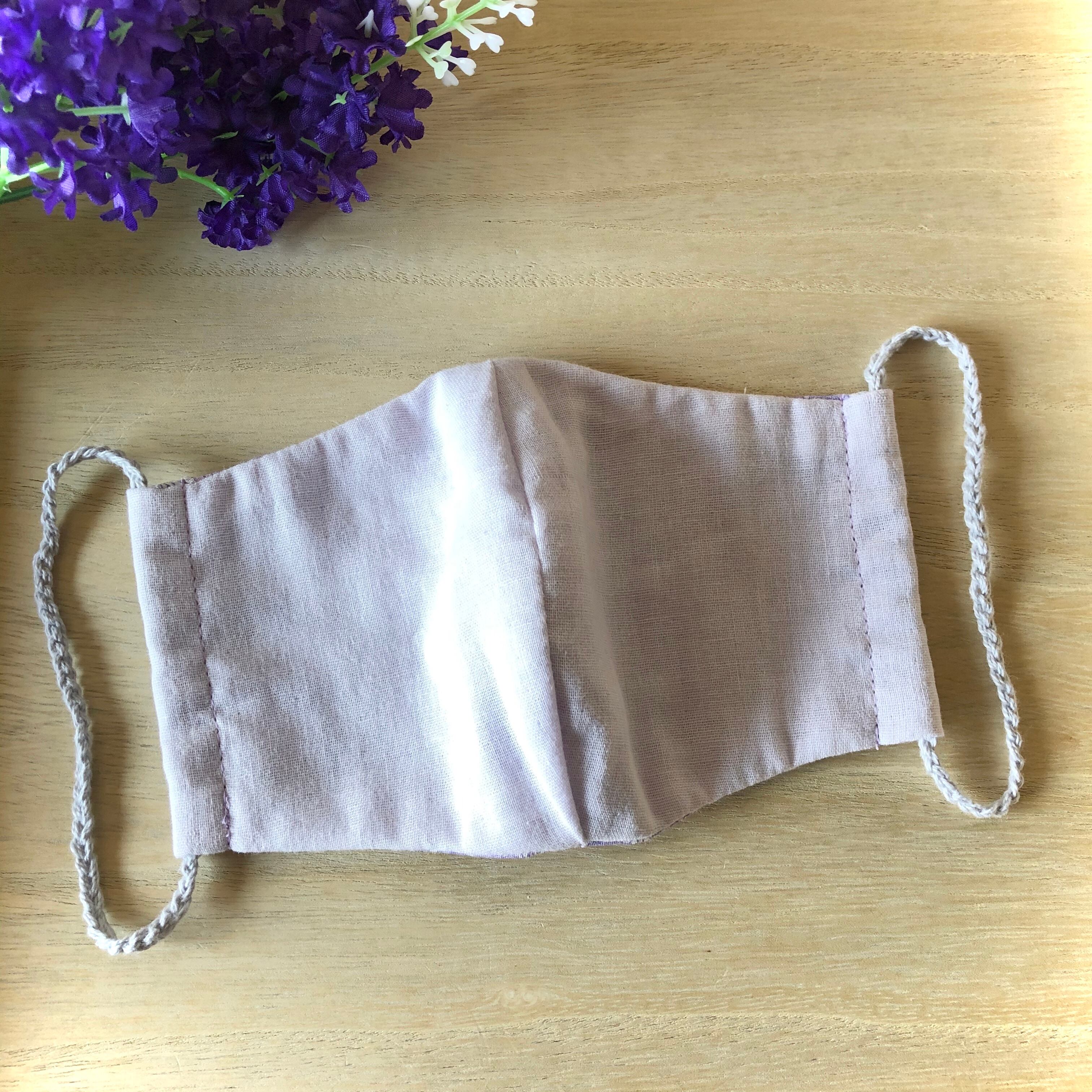 表面の生地はガーゼで薄いパステルパープルの優しい色味です。