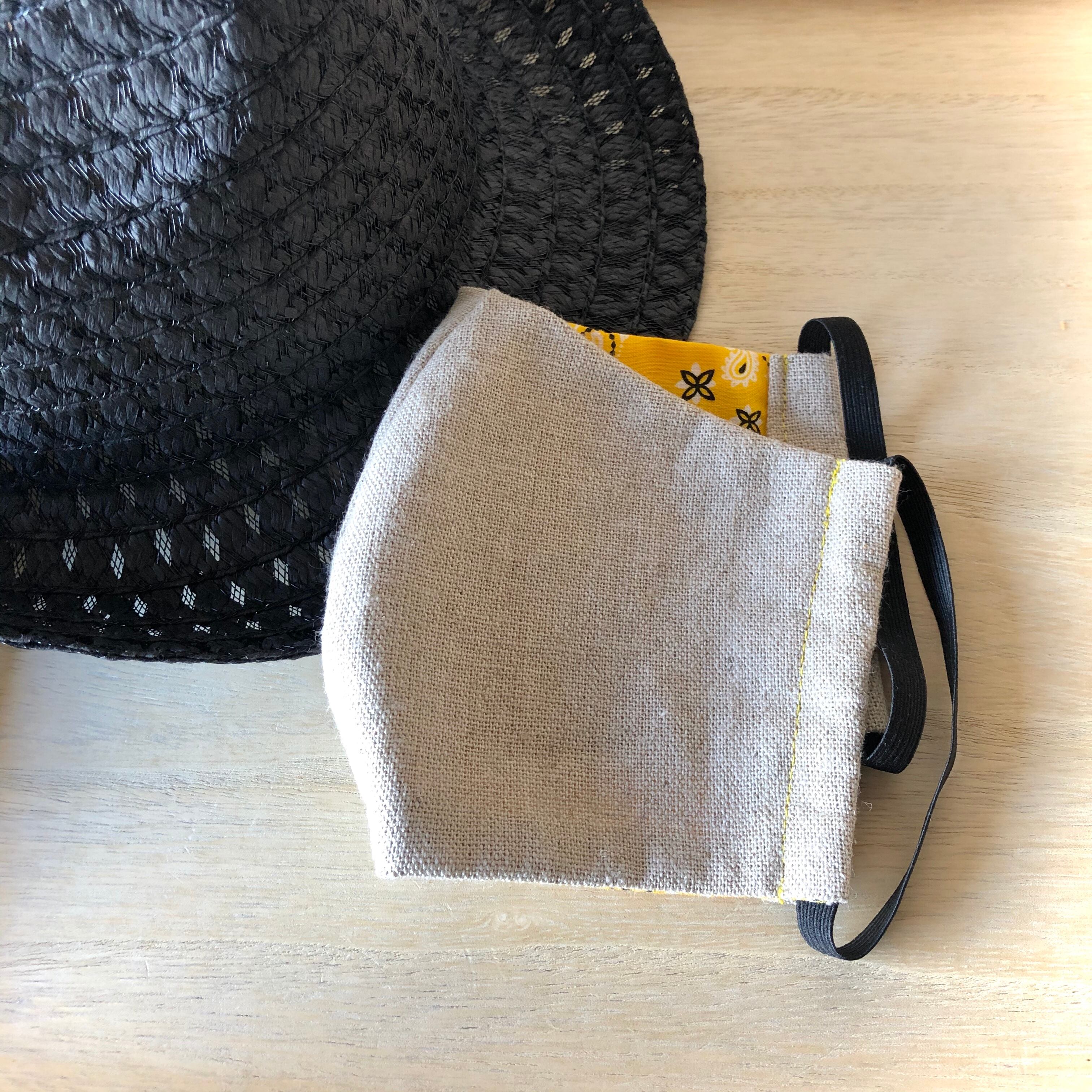 柔らかい麻綿混合素材の男性用大きめサイズの手づくりマスクです!