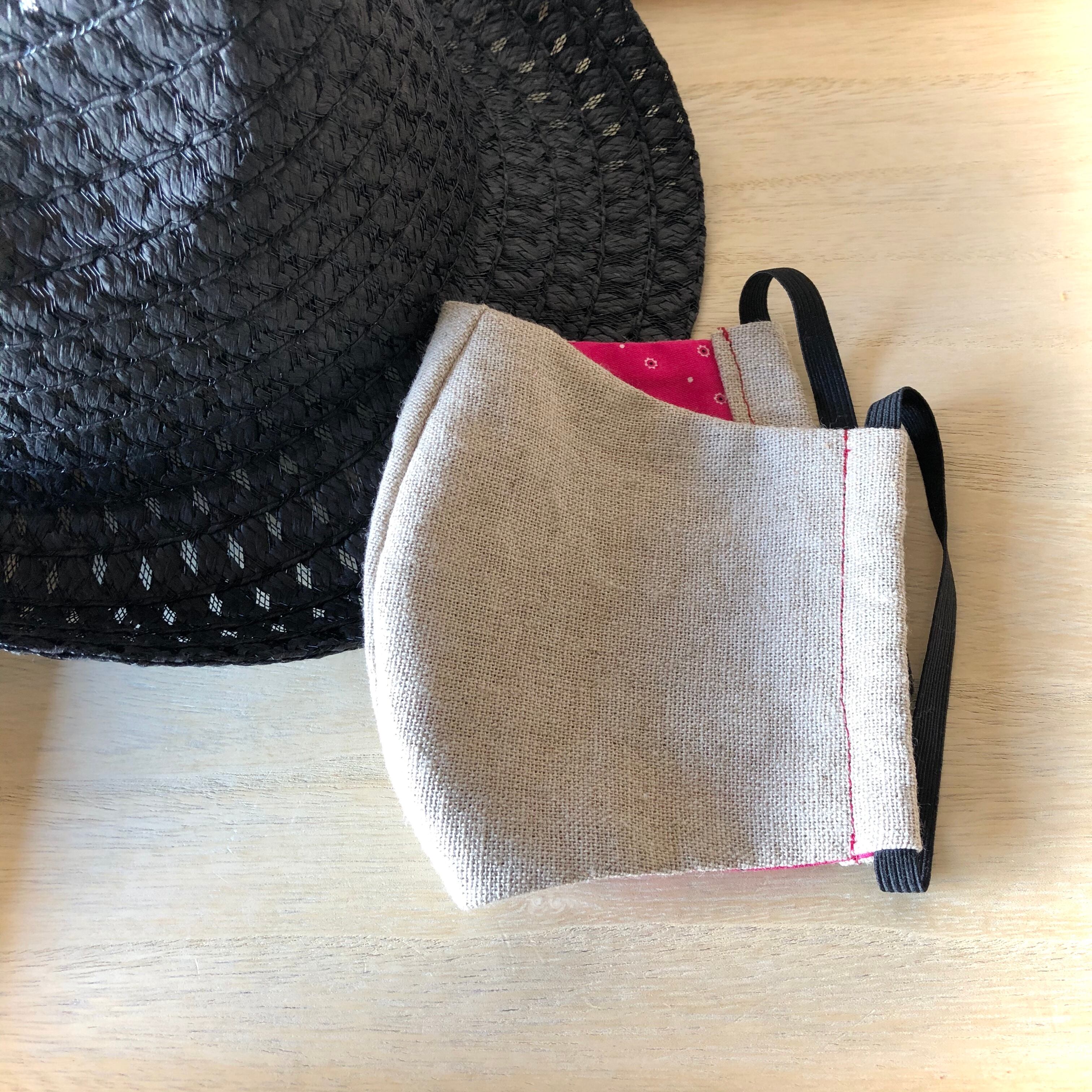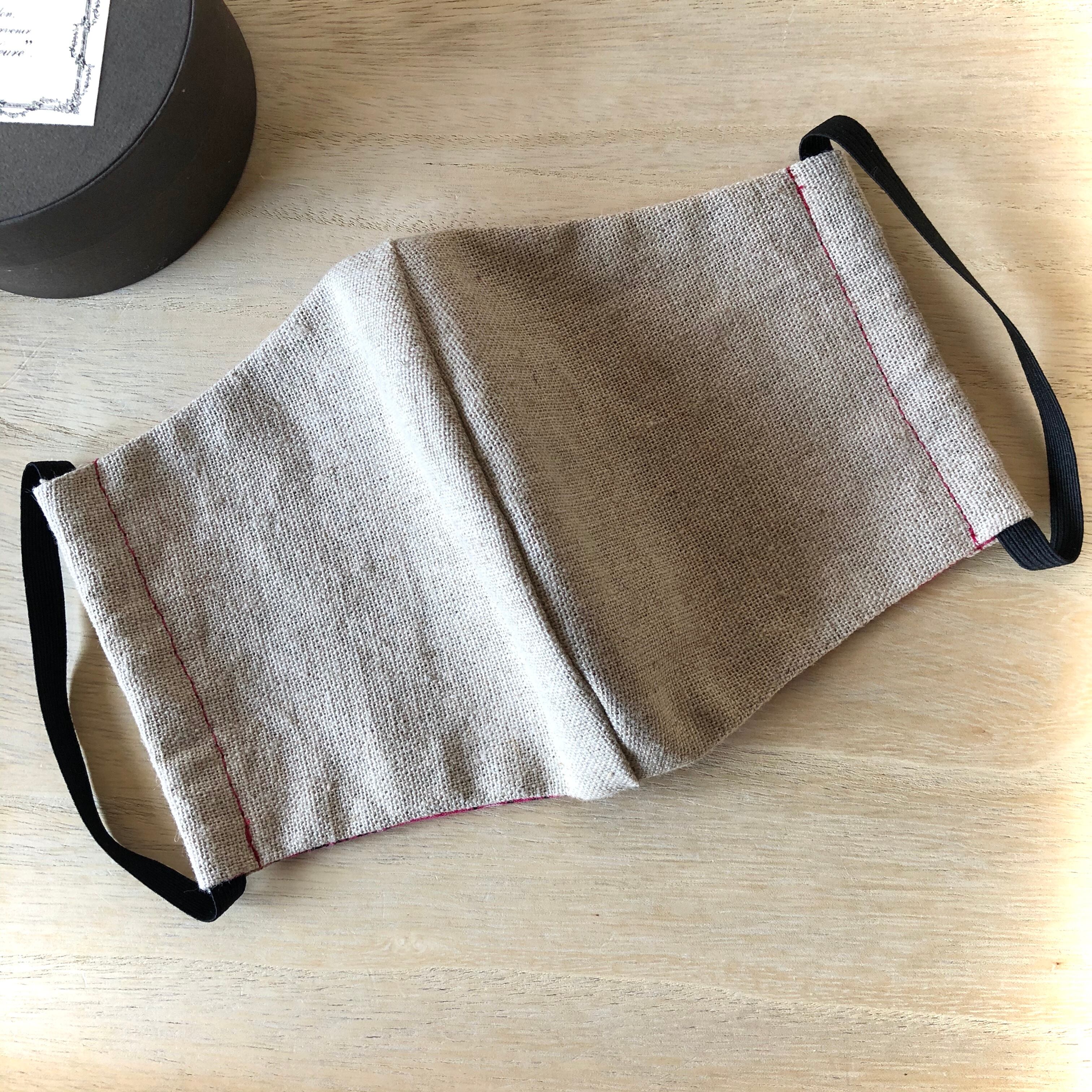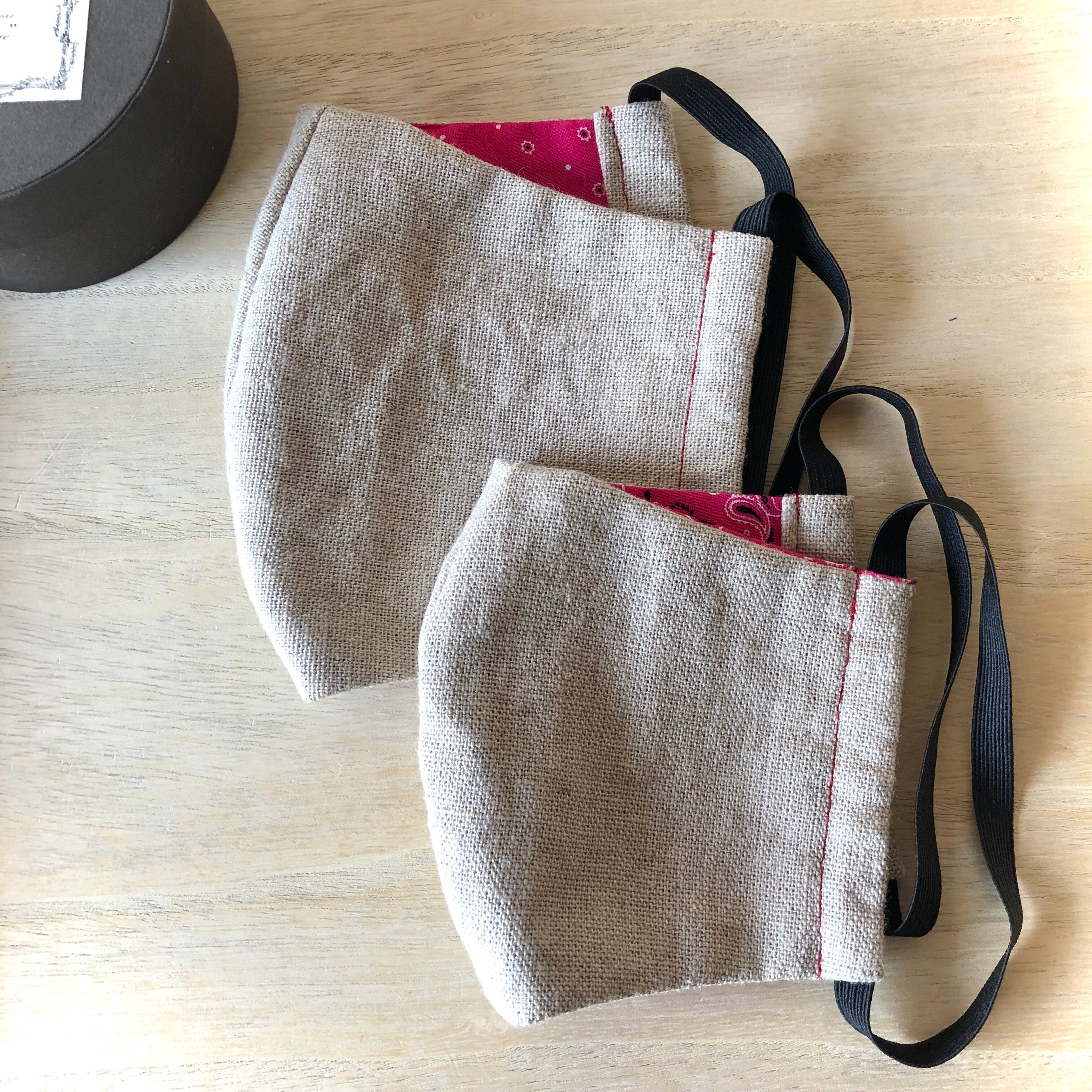 柔らかい麻綿混合素材の男性用大きめサイズの手づくりマスクです!