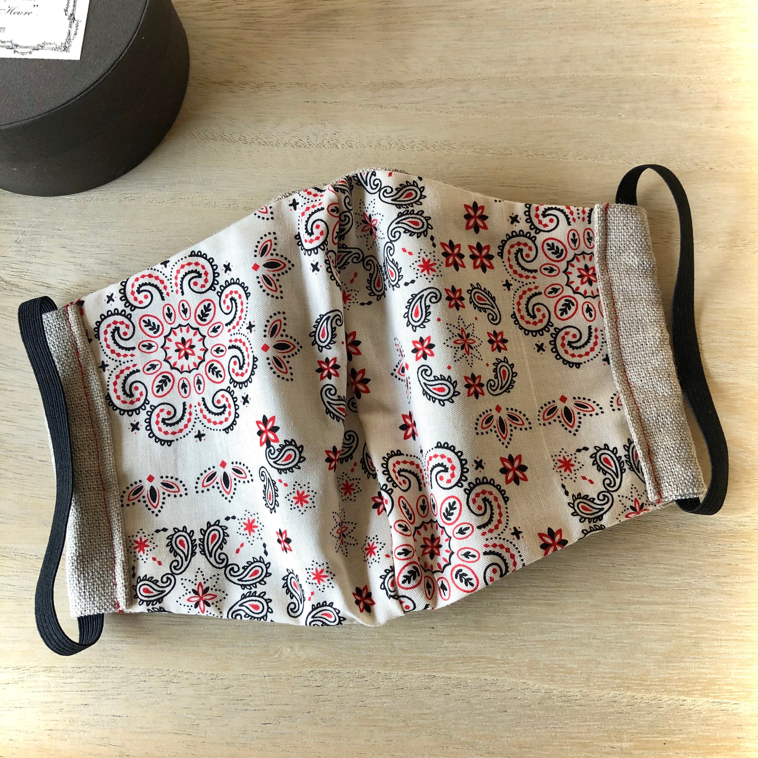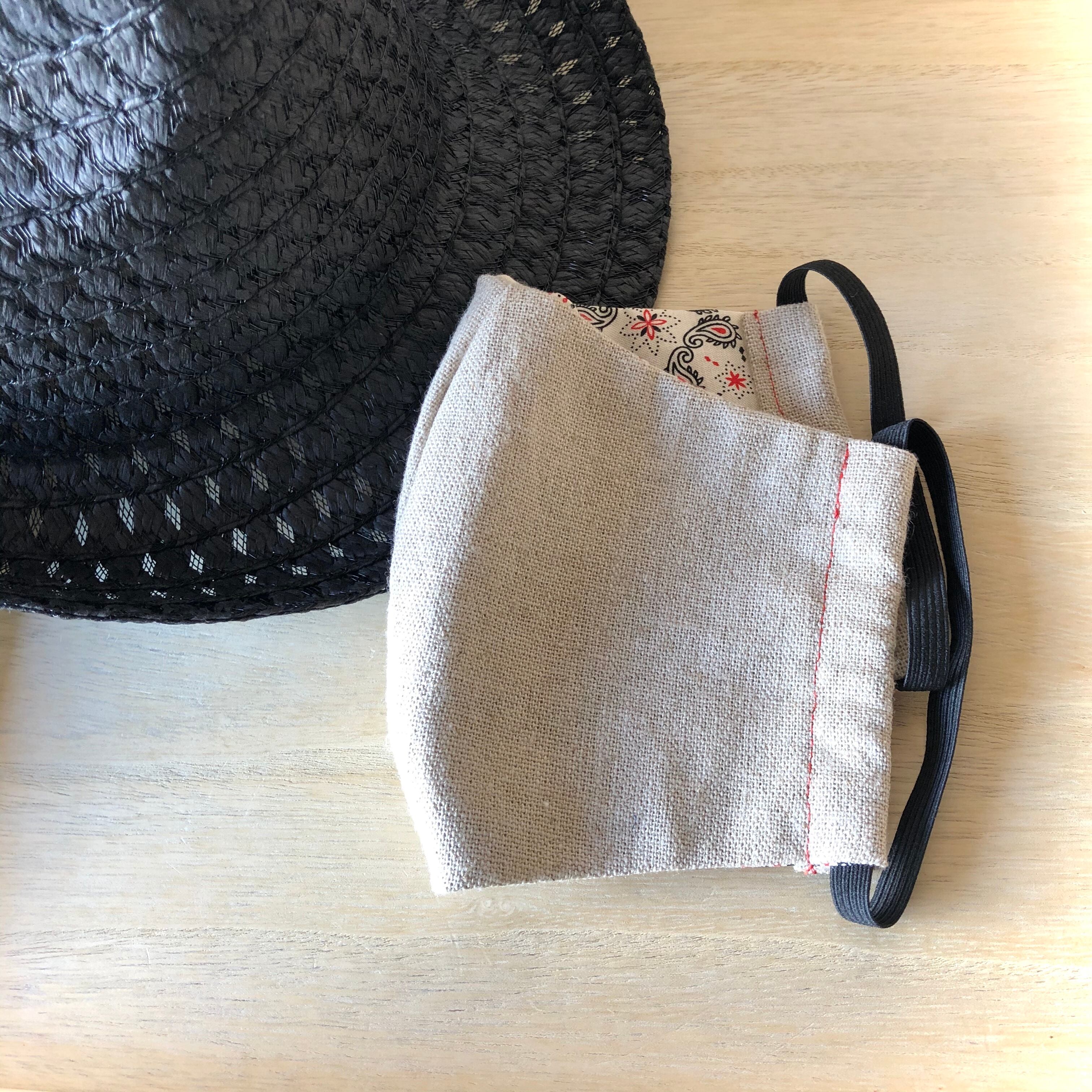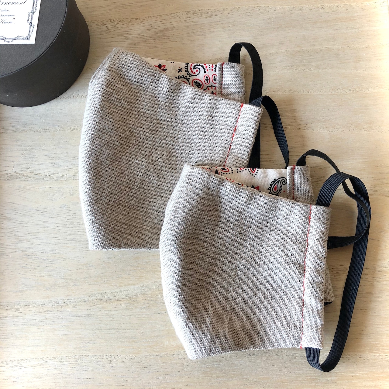 柔らかい麻綿混合素材の男性用大きめサイズの手づくりマスクです!