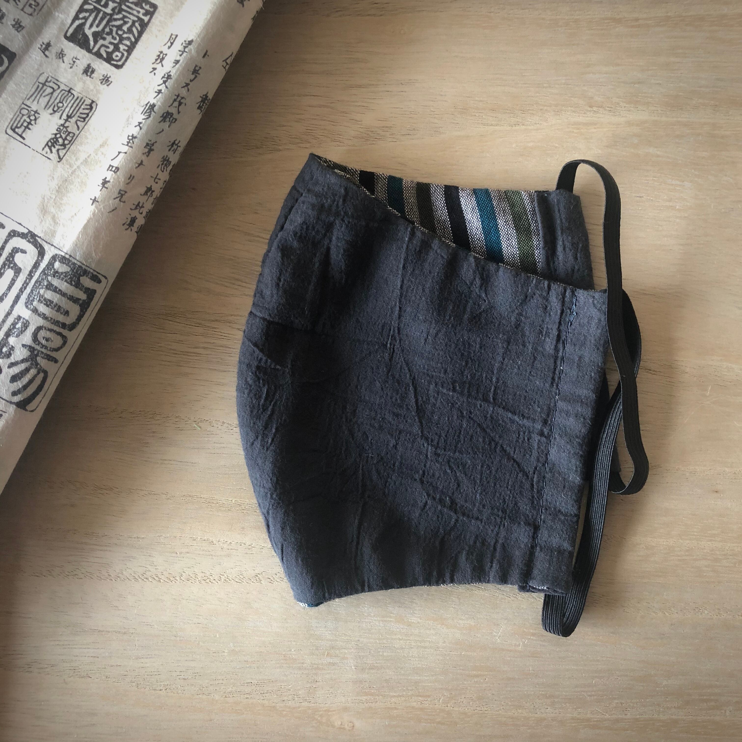 浴衣や甚平の和の雰囲気をイメージした裏面が縦縞の粋なデザインのマスクです。
