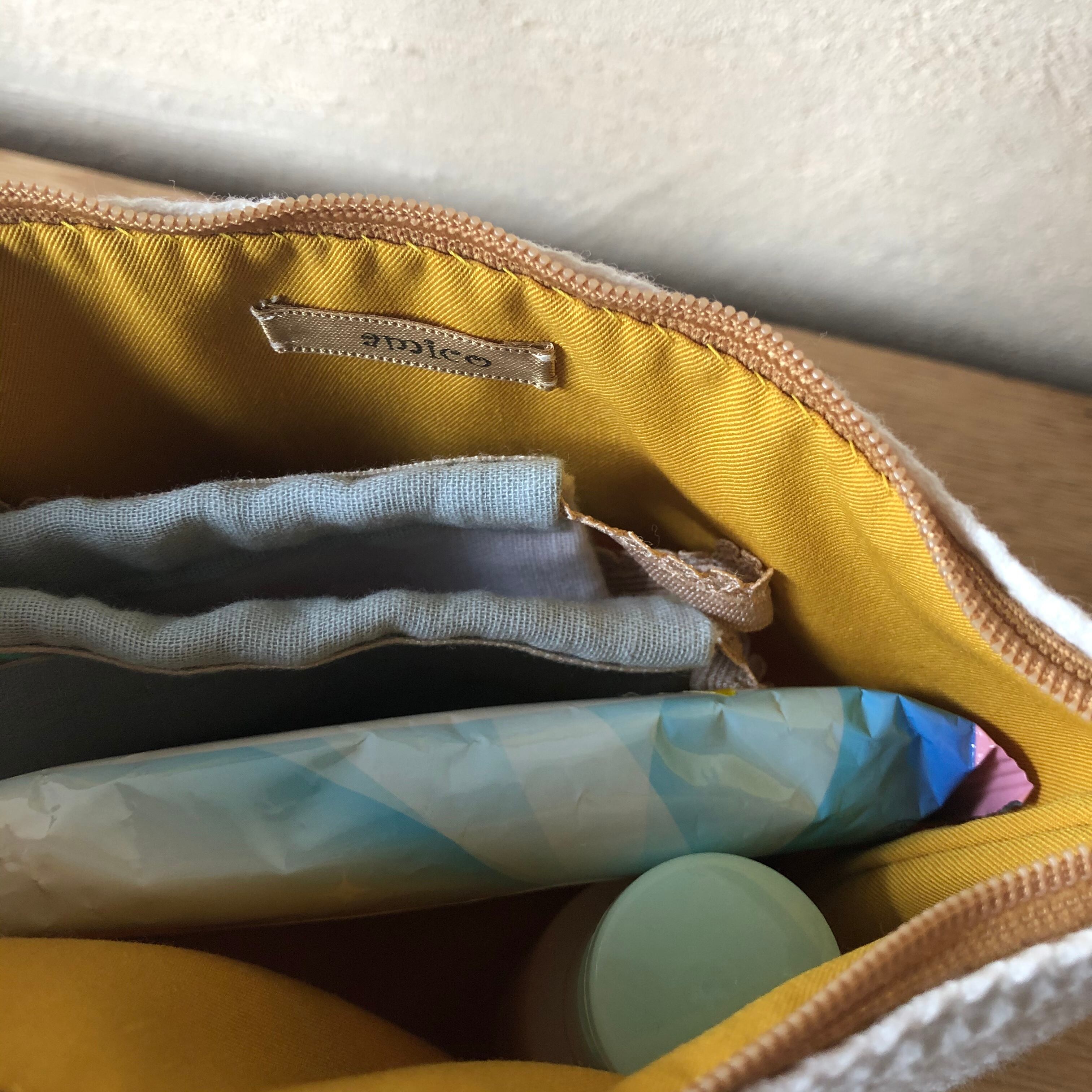 使い捨てマスクや除菌シート、携帯用除菌スプレーなど入れられるサイズになっています。