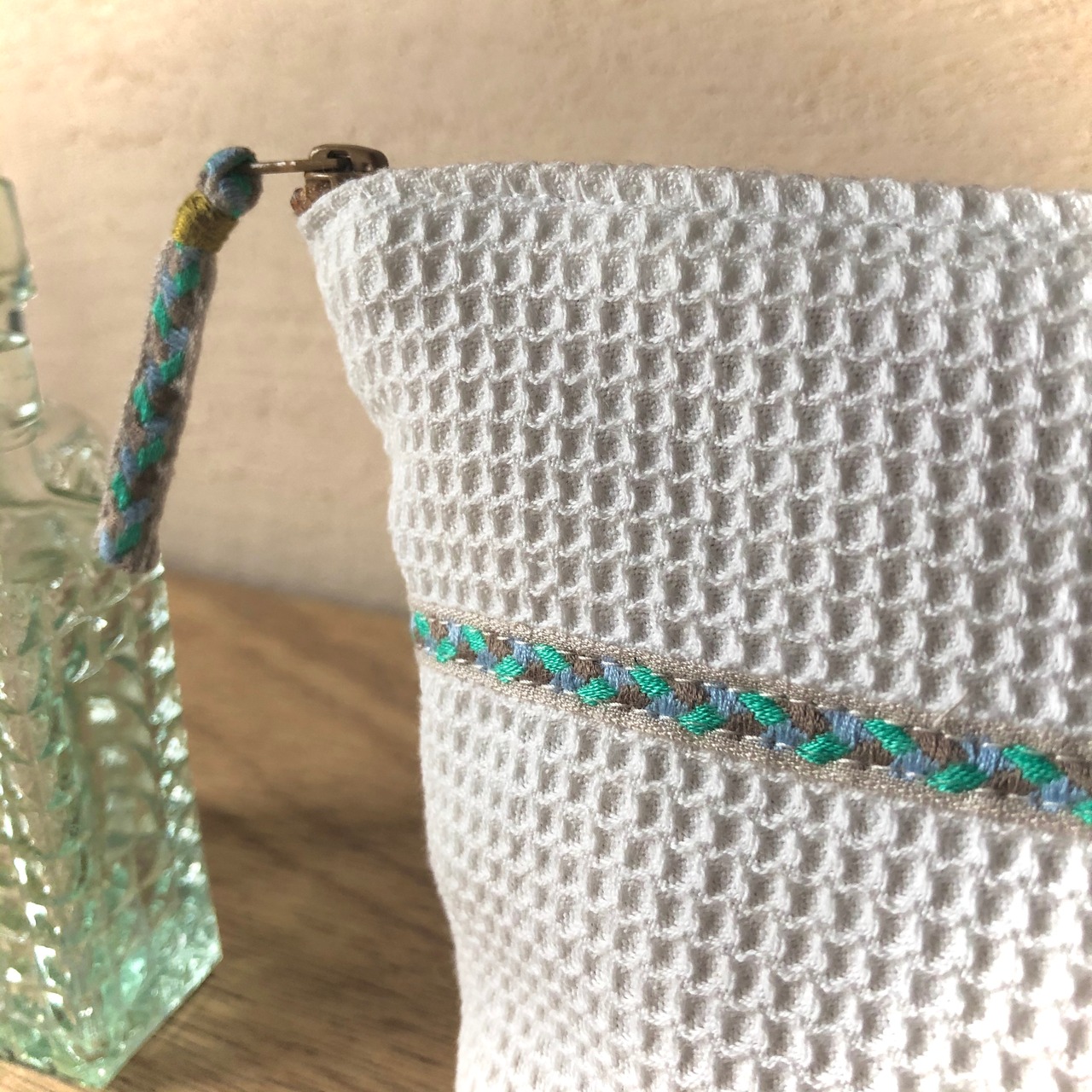 肌触りの良い綿の清潔感のあるホワイトワッフル生地を使用。