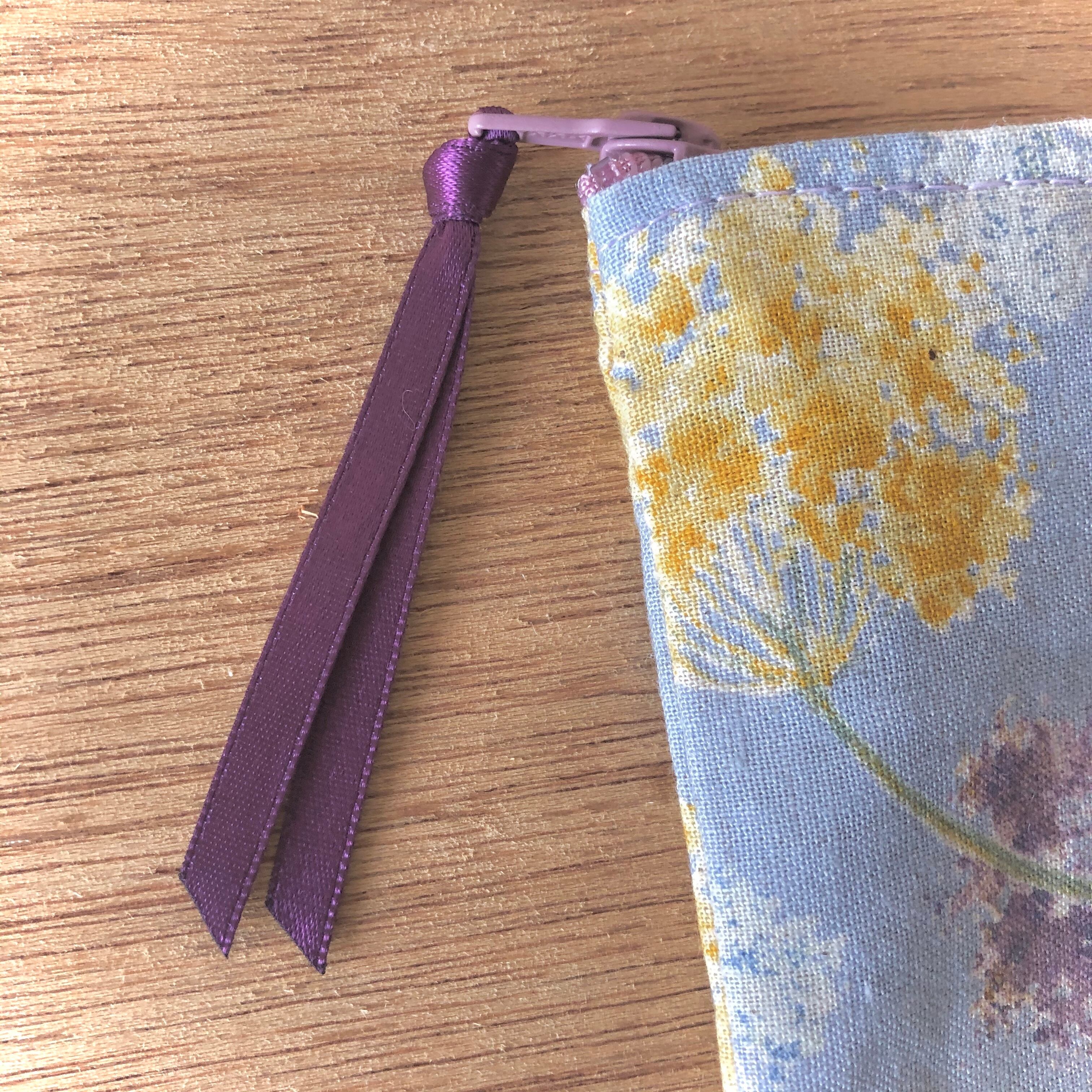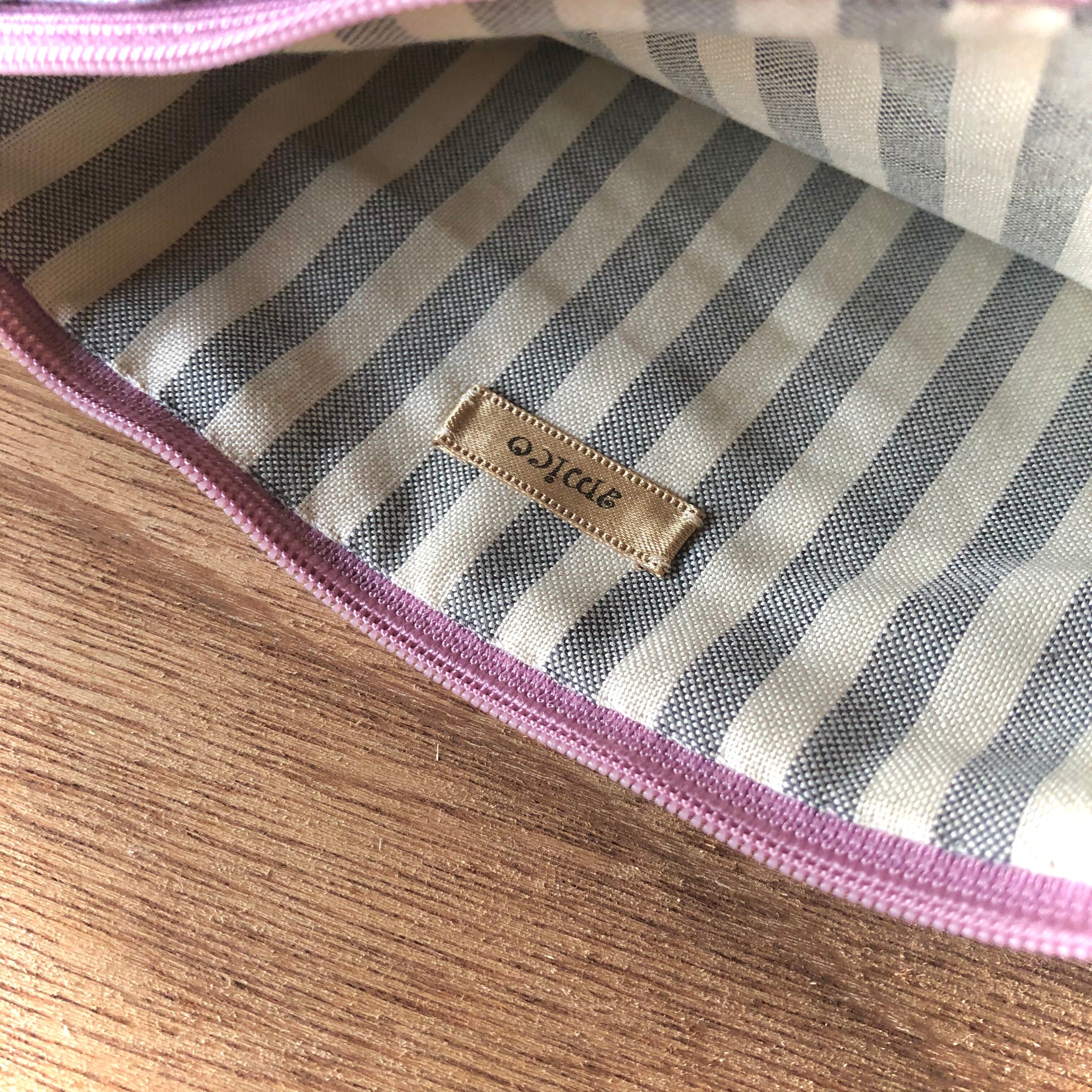 チャックは薄いピンクパープル、パープルのリボンがついています。