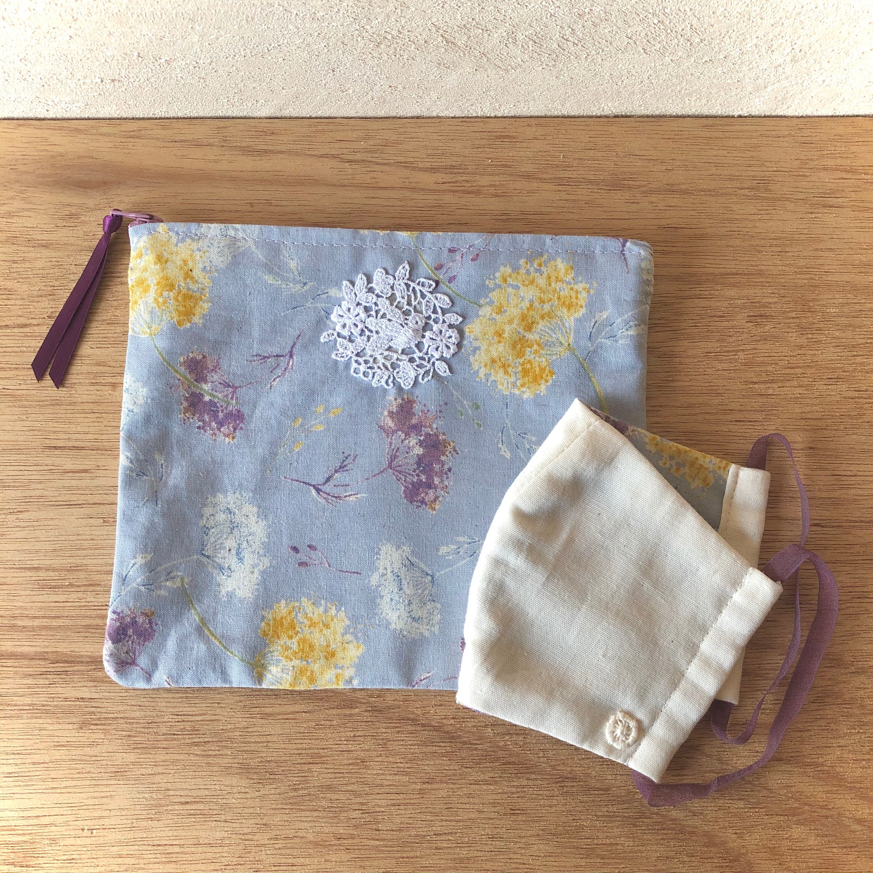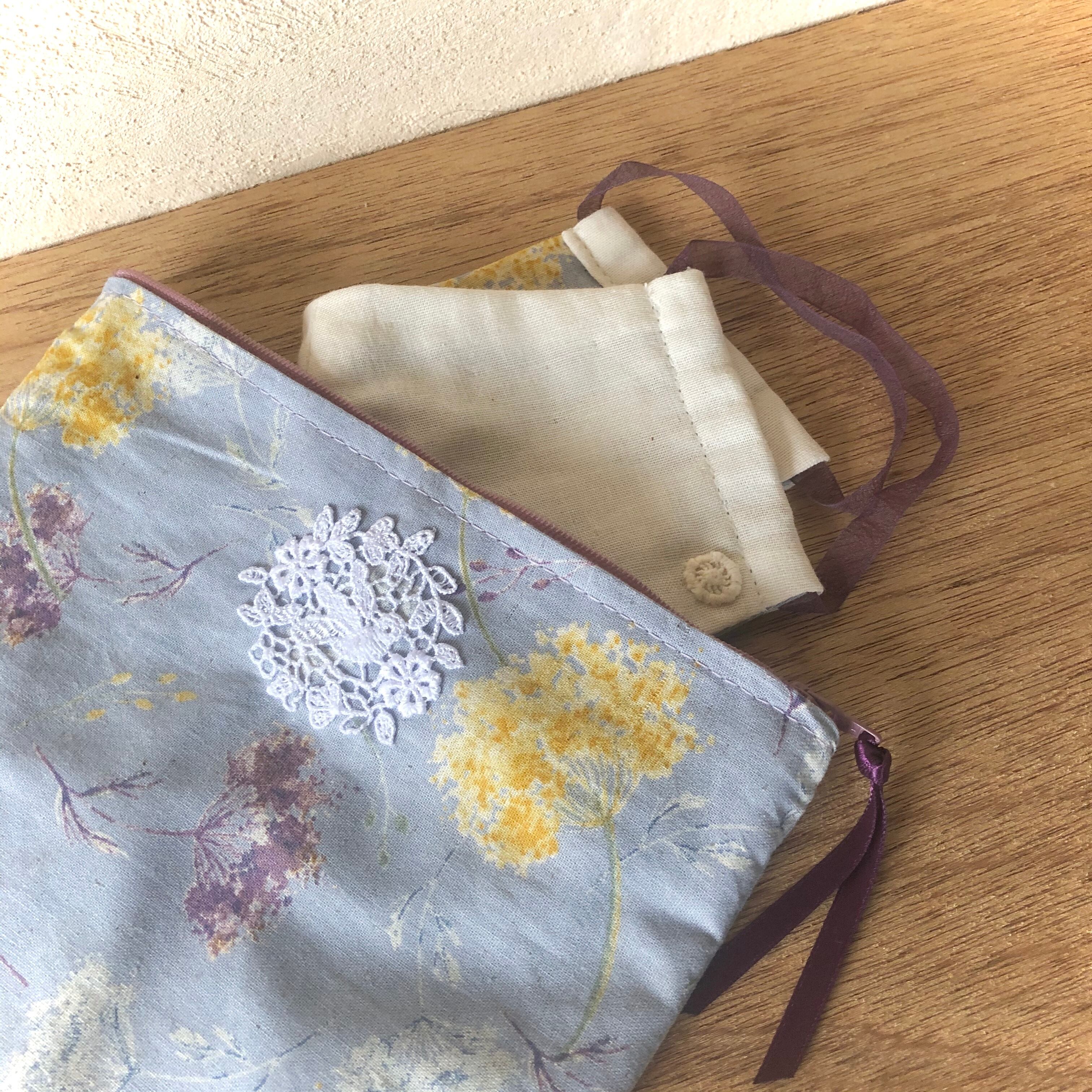 使うたびに楽しくなるマスクや除菌グッズを入れる専用ポーチ&ふんわり大人の手作りマスクセットです!